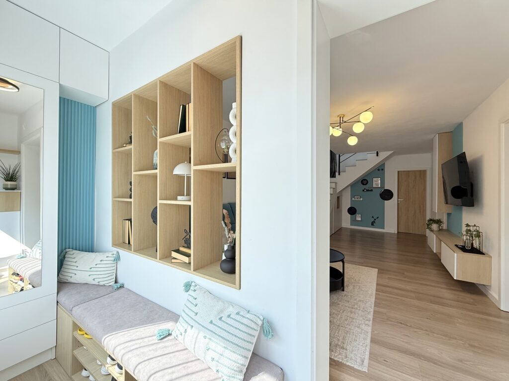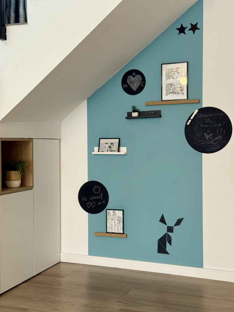 Accentul turcoaz a adus veselie într-o casă reamenajată funcțional 10 decembrie 2025 | Case și amenajări | Petri Radulescu Distribuie articolul pe: Locuința unei familii din Sânmihaiu Român, în apropiere de Timișoara, a trecut recent printr-un proces amplu de reamenajare, devenind nu doar mai frumoasă, ci și integral funcțională. Alegerea unei culori de accent existente deja în amenajarea băii – un albastru turcoaz vibrant – a contribuit la crearea unei atmosfere vii și coerente în toată locuința. Proiectul a vizat inițial zona de zi de la parter și micul hol de la intrare, însă, pe parcurs, au fost incluse și camerele de la etaj: dormitorul matrimonial, camera copilului și biroul folosit de părinți pentru zilele de lucru de acasă. „Proprietarii nu au avut multe cerințe, cel mai important era ca spațiul să fie intim, cald și vesel”, declară pentru Casa și grădina designerul Raluca Ciutureanu, care s-a ocupat de proiect. Holul îngust, cea mai mare provocare Zona care i-a dat cel mai mult de lucru designerului a fost holul de la intrare – un spațiu îngust, dar cu rol esențial în organizarea casei. Proprietarii își doreau o depozitare cât mai eficientă, fără a pierde legătura vizuală cu zona de zi, situată imediat alături. „Provocarea principală a fost holul destul de îngust, ce se dorea să fie exploatat la maximum pentru depozitare, dar în același timp să fie și puntea de legătură cu spațiul deschis al camerei de zi”, spune designerul. Raluca Ciutureanu a păstrat nota veselă printr-o băncuță tapițată, completată de perne coordonate cu riflajul din duropolimer vopsit în turcoaz. Un raft deschis, vizibil din ambele spații, oferă continuitate vizuală și găzduiește obiecte decorative alese împreună cu proprietara, în cadrul unei sesiuni de shopping dedicate. O zonă creativă pentru copil Sub scară a fost amenajată o mică zonă interactivă pentru băiatul familiei. Un tapet magnetic, vopsit în aceeași nuanță de turcoaz, permite schimbarea rapidă a polițelor și oferă posibilitatea de a desena cu cretă pe inserțiile circulare. „Este un element vesel și util. Poate deveni și locul ideal pentru expunerea magneților aduși din călătorii, dacă nu se mai dorește încărcarea frigiderului” cu ei, spune designerul. Biroul – loc de lucru, relaxare și cazare pentru oaspeți La etaj, biroul folosit de părinți în zilele de lucrat de acasă a necesitat o amenajare atentă și versatilă. A fost gândită o suprafață de lucru generoasă, suficientă pentru monitor și laptop, dar și depozitări pentru acte, cărți și câteva obiecte decorative. Spațiul include și un colț de relaxare cu un fotoliu comod, precum și o canapea extensibilă destinată musafirilor. Mobilierul personalizat – alegerea potrivită Majoritatea pieselor de mobilier din casă au fost realizate la comandă, pentru a folosi eficient spațiile, în special la etaj, unde camerele au tavane înclinate. Această abordare a permis optimizarea fiecărui colț disponibil și integrarea armonioasă a pieselor în arhitectura casei. „Costul mobilierului pentru cele două zone, împreună cu achiziția canapelelor, a fost de aproximativ 10.000 de euro”, precizează designerul. Alegerile inteligente în privința materialelor și a culorilor au dat sens unei case care nu oferea proprietarilor suficient, nici funcțional, nici ca estetică. Noua amenajare a adus un aer proaspăt și o atmosferă veselă, în care viața de zi cu zi se derulează cu bucurie. CITEȘTE ȘI: Vederea spre mare a inspirat amenajarea acestui apartament O amenajare interioară unde ceramica face diferența Decor de film, confort atemporal în stil tradițional Distribuie articolul pe: Petri Radulescu