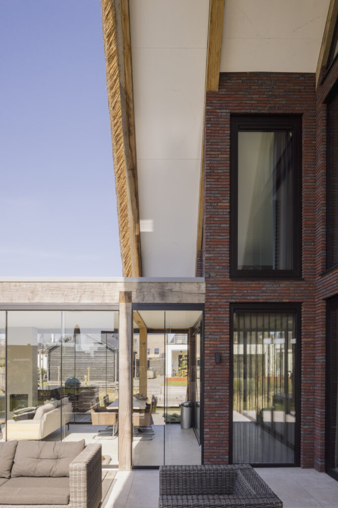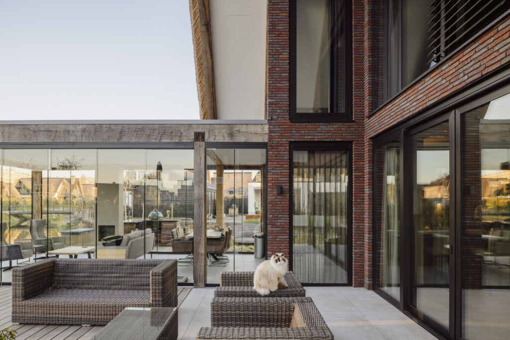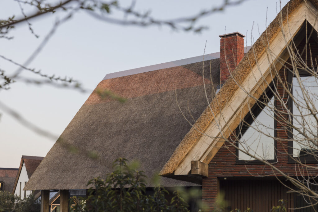 Foto: Jordi Huisman Arhitectura ca inspirație: formă modernă, material tradițional 3 martie 2026 | Proiecte de case | Petri Radulescu Distribuie articolul pe: O casă de familie poate deveni o declarație de stil atunci când arhitectura pornește de la o idee clară. În cazul acestei locuințe spectaculoase din Wilgenrijk Maassluis, punctul de plecare a fost dorința beneficiarilor de a avea un acoperiș din stuf: un material tradițional, reinterpretat într-o manieră contemporană de către arhitecți. Conceptul propus de echipa de proiectare pune accentul pe acoperiș ca element central al întregii construcții. Acesta nu este doar un detaliu estetic, ci devine o formă unificatoare, care „îmbracă” și leagă toate zonele casei. Structura de bază urmează linia acoperișului, iar impresionantele grinzi din stejar care îl susțin continuă și în camera de grădină, unde rămân vizibile și pot fi admirate din interior. Integrare în peisaj Locuința unifamilială, construită pe un teren generos de colț, chiar lângă apă, profită din plin de amplasament. Arhitecții de la Derksen|Windt Architects au ales să creeze o frângere a acoperișului la un unghi de 110 grade, astfel încât forma clădirii să se armonizeze cu structura peisagistică a zonei. Partea rotită a acoperișului îi „întâmpină” pe proprietari și pe vizitatori încă din momentul sosirii cu mașina, oferind casei o prezență dinamică și primitoare. Accesul în casă se face printr-o zonă de primire care conduce către un hol spațios. De aici, privirea este atrasă atât de scara ce urcă spre nivelul superior, cât și de perspectiva către acoperiș. În același timp, o ușă pivotantă elegantă dezvăluie priveliștea apei din apropiere. Planul interior este gândit astfel încât circulația să urmeze în mod natural direcția principală a casei. Spre fațada dinspre grădină, acoperișul generos, cu streașină amplă, devine din nou un element dominant, vizibil chiar și de la nivelul parterului. Granița dintre interior și exterior Fațada către grădină este concepută ca un spațiu complet deschis. Acoperișul continuă peste terasă, sprijinit pe elemente elegante din lemn, fără adaosuri orizontale sau detalii inutile. Rezultatul este o zonă calmă și armonioasă, situată sub streașină, care aparține în egală măsură interiorului și exteriorului, probabil cel mai frumos loc al casei. Acoperișul din stuf este realizat continuu pe toate laturile, cu intervenții minime în planul învelitorii. Detaliile de la nivelul intrării demonstrează măiestria cu care a fost pus în operă, oferind construcției un aer contemporan, în ciuda utilizării unui material tradițional. Dincolo de estetică, performanța energetică a fost o prioritate. Valoarea ridicată a rezistenței termice a acoperișului asigură o eficiență excelentă, iar streșinile ample contribuie la funcționarea pasivă a casei. Sistemul este completat de un schimbător de căldură sol-apă și de panouri solare montate pe anexă. Totuși, baza conceptului rămâne una clară: sustenabilitatea integrată încă din faza de proiectare. Foto: Jordi Huisman CITEȘTE ȘI: Cum extinzi o casă: soluție sustenabilă pentru a câștiga spațiu Arhitectură la munte: o poveste tradițională spusă în lemn și piatră Căsuța de deasupra garajului: soluție sustenabilă pentru un spațiu mic Distribuie articolul pe: Petri Radulescu