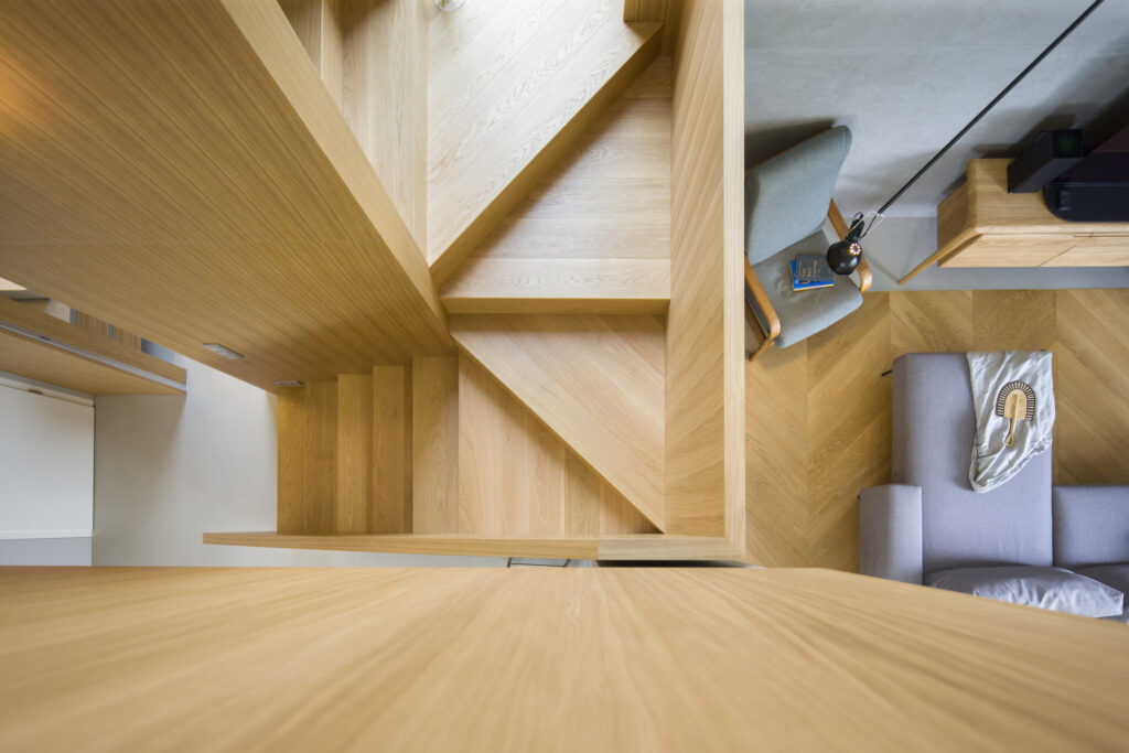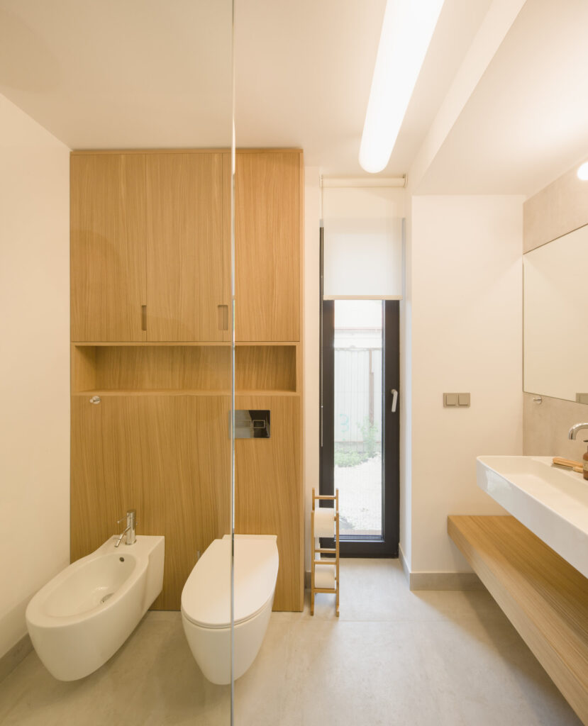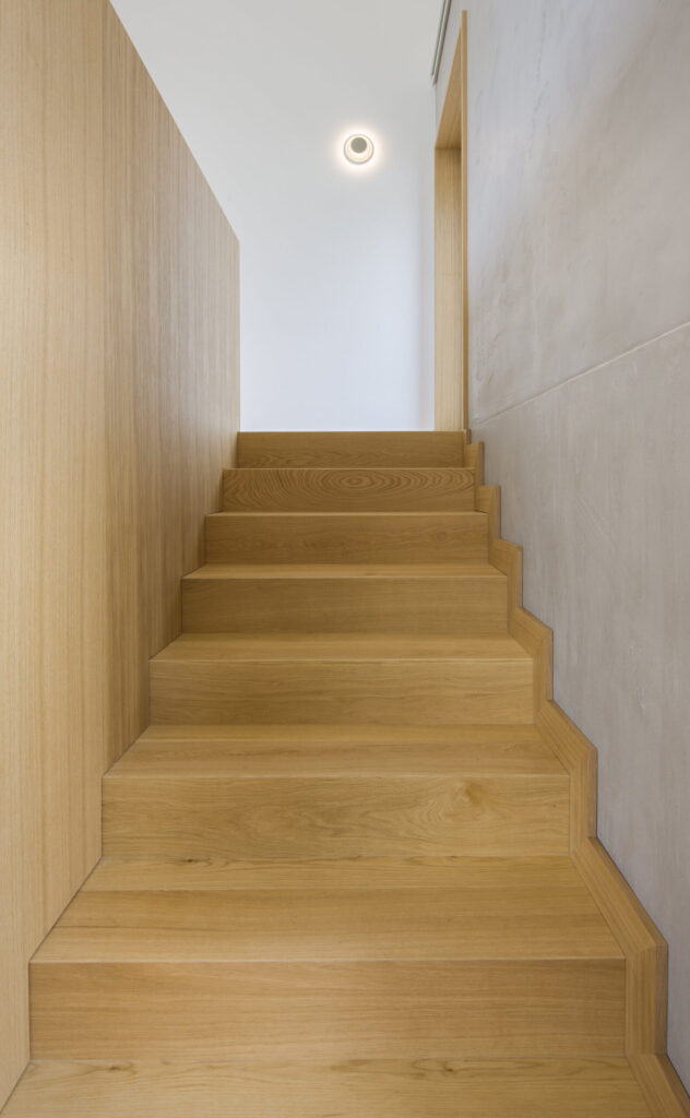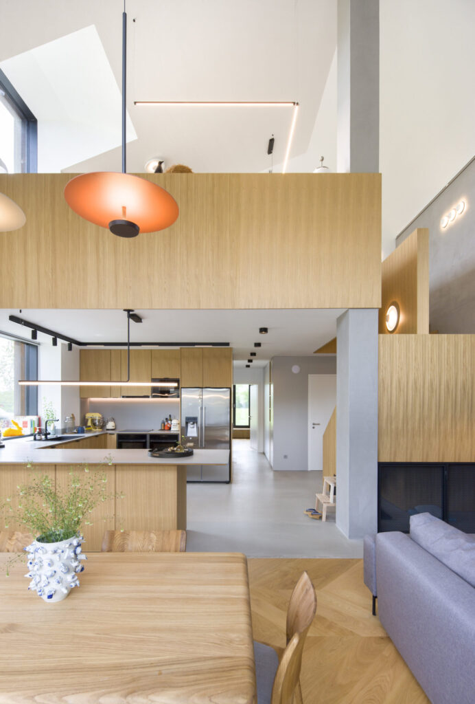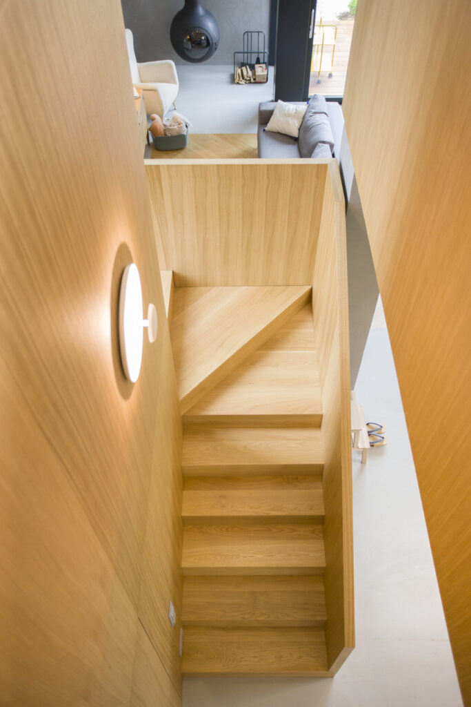 Mobilierul realizat special pentru această casă urmează aceeași linie simplă, în nuanțe de stejar și gri, punând accent pe textura naturală a materialelor. Atenția la detalii și calitatea execuției sunt vizibile în fiecare spațiu.