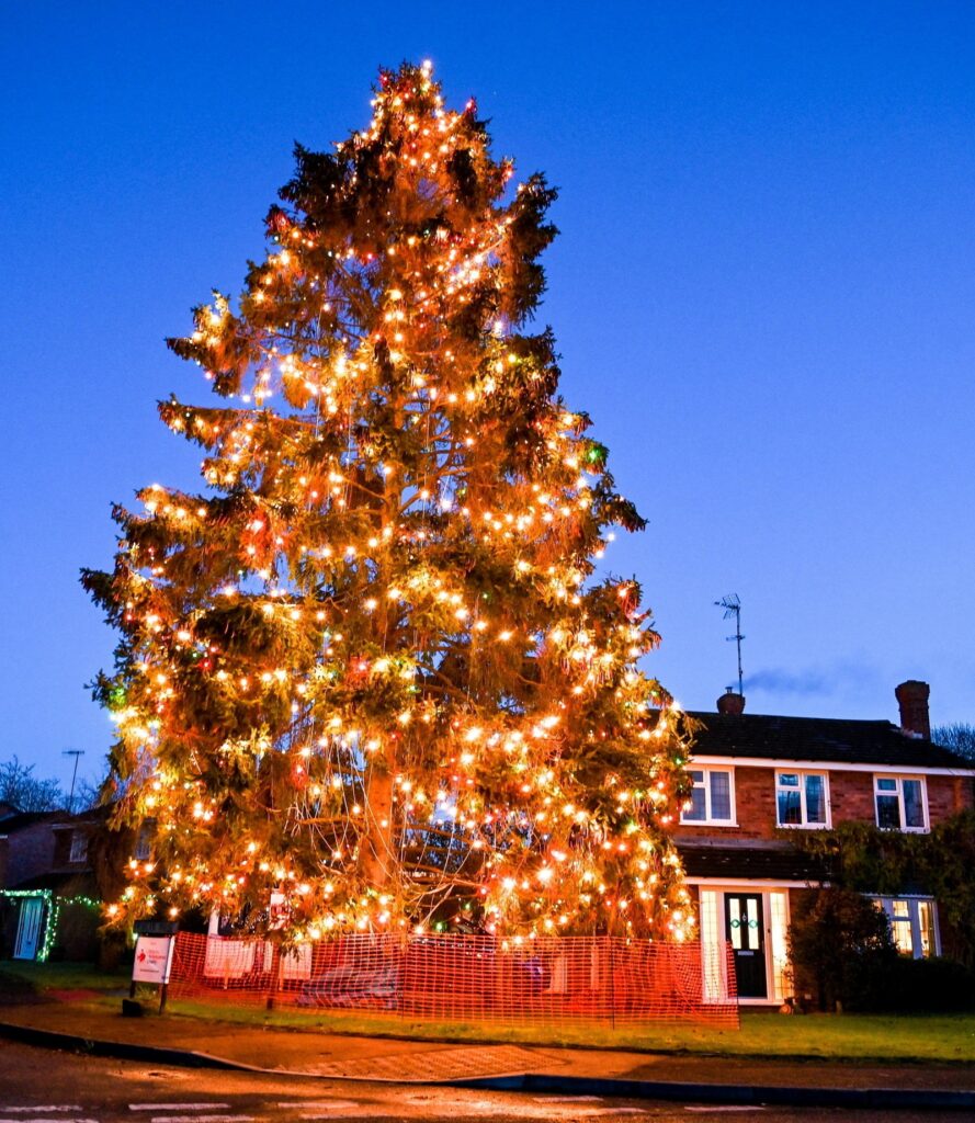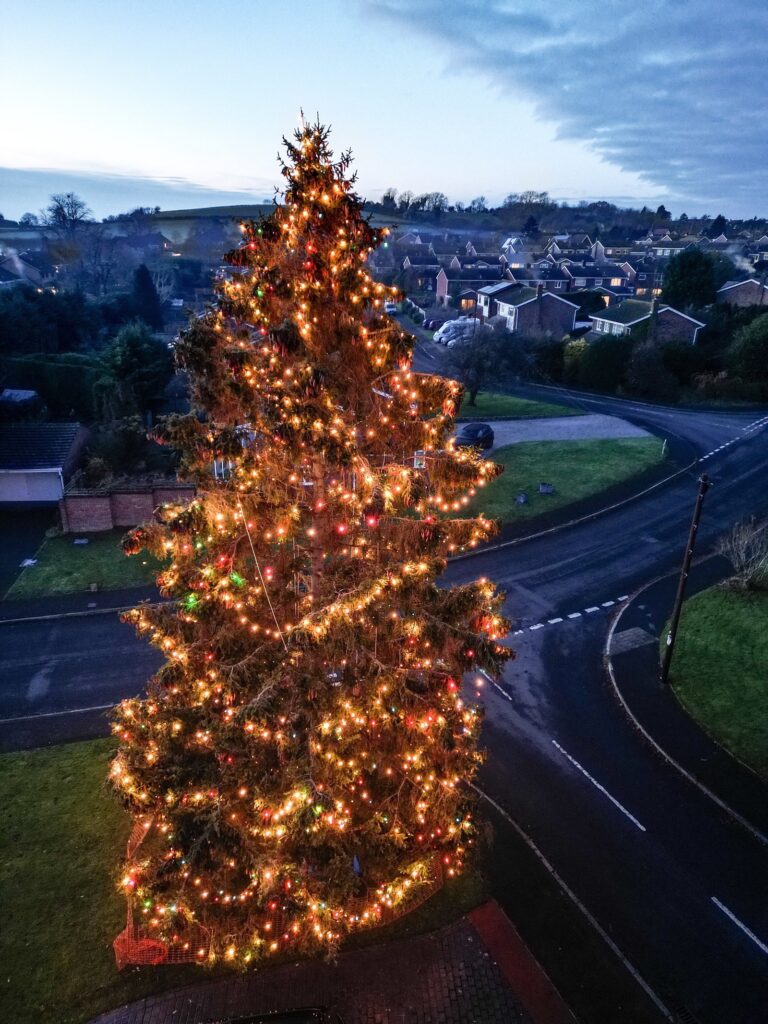 Asta înseamnă că bradul uriaș, împodobit în fiecare an cu mii de luminițe, poate fi văzut de la o distanță impresionantă. Strălucește ca un far în întuneric, iar pentru mulți locuitori din zona rurală, reprezintă primul semn că sărbătorile se apropie.