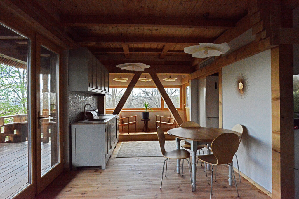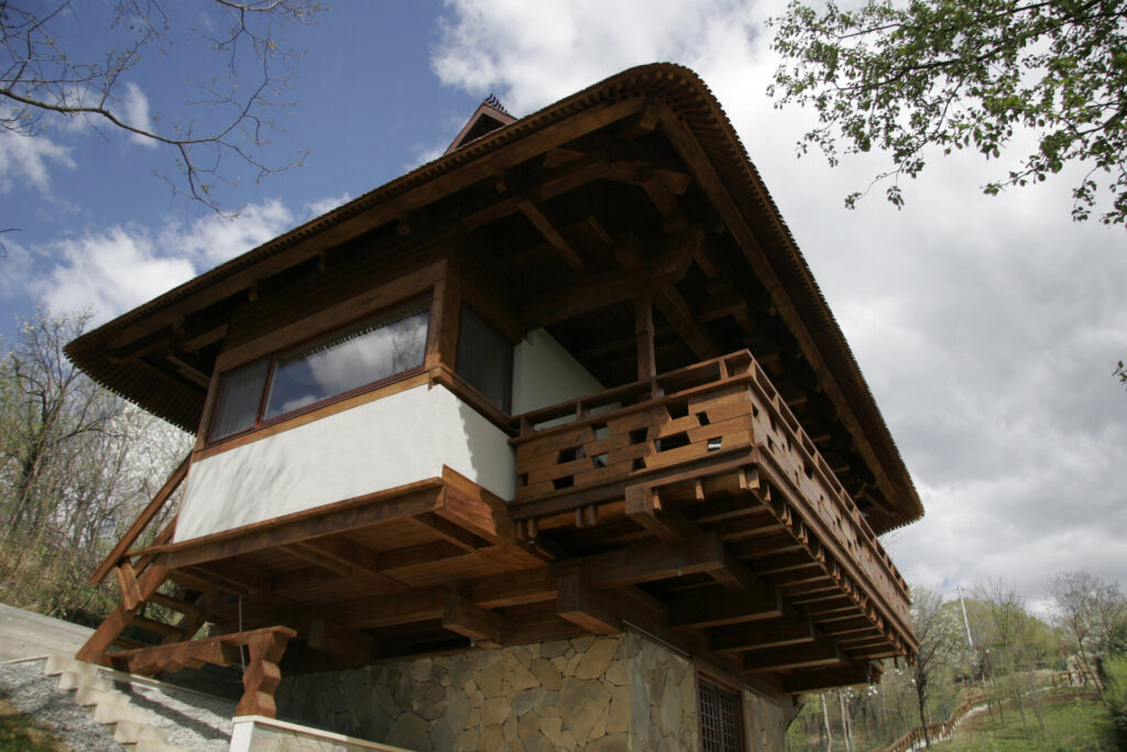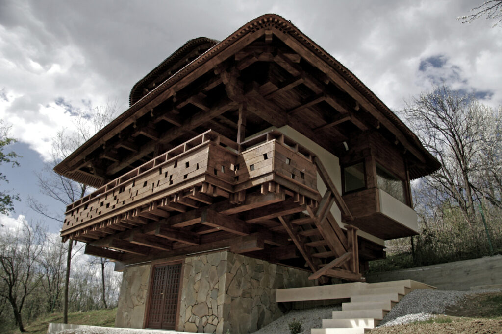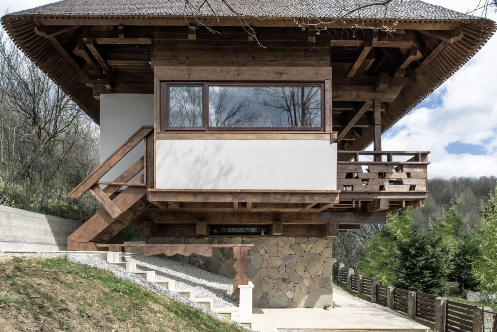 Casa din livadă, unde arhitectura românească primește influențe japoneze 2 noiembrie 2025 | Proiecte de case | Petri Radulescu Distribuie articolul pe: În comuna Cornu de Jos, pe o coastă cândva acoperită de o livadă părăsită și invadată de vegetație și urși, a prins viață o casă care aduce împreună două lumi aparent îndepărtate: arhitectura tradițională românească și cea japoneză. Proiectul, amplasat pe un teren îngust de aproximativ 1400 de metri pătrați, cu o pantă accentuată pe direcția nord-sud, demonstrează cum tradiția poate fi reinterpretată cu respect și creativitate. O casă mică la sol, dar mare în sens Construcția este organizată pe trei niveluri, demisol, parter și mansardă, și a fost gândită astfel încât amprenta la sol să fie cât mai mică. Alegerea nu a fost doar estetică, ci și practică: o amprentă redusă înseamnă un consum mai mic de materiale, deci un impact energetic scăzut. Diferența de nivel este semnificativă: între colțul demisolului și punctul cel mai înalt al acoperișului sunt aproximativ 4,5 metri. Întâlnirea dintre Oltenia și Orient Conceptul principal al proiectului este reinterpretarea arhitecturii tradiționale românești printr-o fuziune între stilul oltenesc și tehnica asiatică dou-gong, specifică Japoniei, Chinei și Coreei. În Orientul Îndepărtat, maeștrii dou-gong construiesc de secole structuri din lemn complexe, capabile să reziste la seisme puternice, fără a folosi armături metalice. Într-un fel, acești meșteri seamănă cu „meșterii maramureșeni” de la noi, ambele tradiții se bazează pe experiență, echilibru și respect față de material. Prispa românească și engawa japoneză Arhitectura casei readuce în prim-plan „prispa oltenească”, reinterpretată printr-un joc structural inspirat din tehnica dou-gong. Grinda longitudinală a prispei este susținută în principal de grinzi masive din pereții transversali, nu de stâlpii tradiționali. Doar doi stâlpi de larice, poziționați la margine, susțin structura, în timp ce cel central a fost eliminat pentru a nu fragmenta spațiul interior. Deasupra acestei grinzi transversale se află grinzi perpendiculare care, spre exterior, capătă rolul de „gong”, iar peste ele sunt suprapuse șapte „dou-ri”, grinzi secundare longitudinale. Aceste suprapuneri ridică vizual acoperișul și pun în evidență grinda principală, deseori sculptată sau decorată artistic. Acoperișul amplu, cu pante generoase, protejează pereții și prispa, o trimitere directă la conceptul japonez de „engawa”, spațiul de tranziție dintre interior și exterior. No Caption No Caption Simboluri și detalii autentice Stâlpii exteriori urmează modelul oltenesc, iar cel central este unul aparte, unicul model de stâlp cu trăsături antropomorfe din arhitectura românească, amintind, prin expresivitate, de motivele culturii Dogon din Africa. Acoperișul din șindrilă tip „bot de rață”, cu acei „ciocalandri” specifici Olteniei, completează identitatea unică a construcției, fiind un detaliu endemic, pur românesc. Funcționalitate și intimitate Parterul este organizat în jurul unei prispe generoase și al unui living spațios, care include o zonă de luat masa, o minibucătărie, o baie de serviciu și o seră. Un element deosebit este „divanul din living”, o zonă închisă cu sticlă, care face parte din spațiul de zi, dar oferă și intimitate, invitând la reflecție sau la contemplarea naturii din jur. Conceptul a fost inspirat de arhitectura unor case din Australia, unde spațiile interioare comunică liber cu exteriorul. De la parter, o scară leagă zona de zi cu mansarda, unde se află cele două dormitoare, iar un acces secundar permite intrarea direct în sera casei. Un dialog între tradiție și natură „Casa din livadă” nu este doar o locuință modernă, ci o lecție despre echilibru și respect față de loc, tradiție și natură. Într-un peisaj cândva uitat, arhitectura românească și influențele japoneze au găsit un limbaj comun, în care lemnul, lumina și liniștea formează o poveste armonioasă. Proiectul arhitecților Mihai Nuta, Ion Soreanu și Alexandra Ilie a făcut parte din cele 51 de de proiecte care au fost înscrise de arhitecți la secțiunea Locuințe Individuale a Bienalei Naționale de Arhitectură 2025. Ediția din 2025 a Bienalei Naționale de Arhitectură – expoziție concurs organizată de Uniunea Arhitecților din România o dată la doi ani – include acordarea unor premii la 19 secțiuni, printre altele pentru proiecte de arhitectură interioară și exterioară, design interior și design de obiect, restaurare a unor clădiri, revitalizare rurală, dar și pentru fotografie ori film de arhitectură. Foto: arh. Iulius Cristea / arh. Mihai Nuta, arh. Ion Soreanu, arh. Alexandra Ilie Distribuie articolul pe: Petri Radulescu