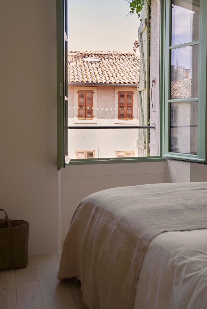 Foto: vipp.com Casă veche, suflet nou printr-o amenajare simplă, contemporană 28 ianuarie 2026 | Proiecte de case | Petri Radulescu Distribuie articolul pe: În satul Lagrasse din sudul Franței, printre străzi medievale șerpuite, poduri de piatră și o vale verde străbătută de râu, se află o casă cu o istorie de aproape 700 de ani. Construită în jurul anilor 1350, această locuință a fost recent readusă la viață printr-o amenajare atent gândită, care respectă trecutul și aduce confortul prezentului. Proiectul poartă semnătura Vipp și transformă clădirea într-o casă de oaspeți cu un aer calm, echilibrat și actual. Renovarea a durat doi ani și a fost realizată sub reguli stricte de conservare. Zidurile groase din piatră, ferestrele mici medievale și acoperișul din țiglă au fost păstrate, pentru a nu pierde spiritul locului. Casa are trei niveluri și o suprafață de 97 mp, iar accesul se face dinspre piața centrală a satului. Parterul are o pardoseală din pietricele mari, care amintește de vechile caldarâmuri ale pieței. Interiorul este simplu, dar bine gândit. Fiecare spațiu are un rol clar, iar mobilierul contemporan se potrivește surprinzător de bine cu structura veche. La parter se află un mic lounge, cu spații de depozitare ascunse, ideal pentru relaxare după o zi petrecută prin sat. Inima casei se află la etajul întâi, acolo unde bucătăria devine punctul central. Designerul de interior Julie Cloos Molsgaard a ales acest nivel pentru gătit și luat masa, imaginându-și oaspeții venind cu produse proaspete din piața locală. Bucătăria este organizată în jurul unei insule Vipp, iar zona de dining se deschide către o terasă spațioasă. Ușile duble duc și către un mic balcon cu vedere spre piață: un loc perfect pentru cafeaua de dimineață sau pentru a privi viața satului seara. O scară sculpturală, realizată de un meșter local, leagă cele trei niveluri ale casei. Aceasta nu este doar un element funcțional, ci și unul decorativ, care aduce un omagiu meșteșugului local. La ultimul etaj se află dormitorul principal și baia, gândite ca un spațiu fluid, fără delimitări rigide. O masă rotundă poate fi folosită ca birou, toaletă sau loc pentru o gustare târzie, iar oglinzile mari ascund discret spațiile de depozitare și baia, amplificând lumina naturală. Punctul central este dușul generos, placat cu marmură roșie locală, cu o fereastră care oferă o priveliște spre acoperișurile vechi ale satului. Foto: vipp.com CITEȘTE ȘI: Casa fără holuri: cum proiectezi o locuință în care spațiul este folosit la maximum Cabana perfectă pentru retragerea în natură: lemn, liniște și simplitate O locuință ca un vin bun: povestea casei – butoi din Hampshire Distribuie articolul pe: Petri Radulescu