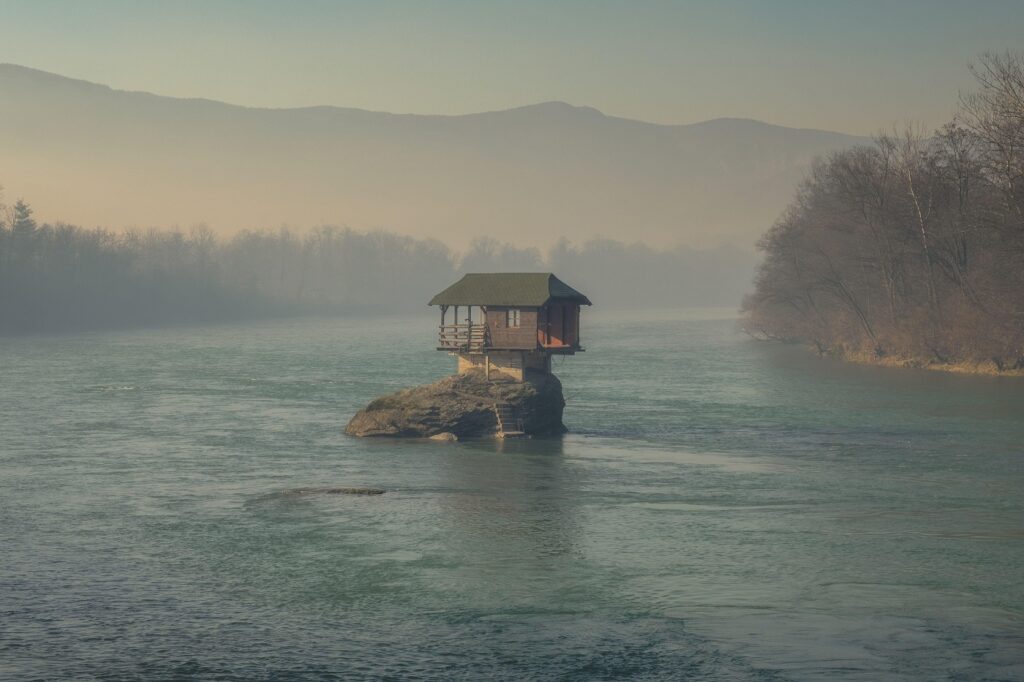 Foto: Profimedia Cel mai fotografiat loc din Serbia – casa din mijlocul unui râu 23 octombrie 2025 | Călătorii și timp liber | Petri Radulescu Distribuie articolul pe: Pe râul Drina, în apropierea orașului Bajina Basta din vestul Serbiei, se află una dintre cele mai neobișnuite și fotografiate case din lume, o mică locuință de lemn construită pe o stâncă, chiar în mijlocul apei. Imaginea ei, așezată singură între maluri, cu munții în fundal și apa curgând la bază, a devenit un simbol al regiunii și o atracție pentru turiști din toată lumea. O casă ridicată din pasiune și prietenie Povestea acestei case începe în anul 1968, când un grup de tineri din zonă obișnuia să înoate și să se odihnească pe mica stâncă din mijlocul râului. După câteva veri petrecute acolo, aceștia s-au gândit să construiască un adăpost simplu din scânduri, unde să se poată feri de soare și vânt. Materialele le-au transportat cu bărci și plute, iar lucrările s-au făcut cu efort și răbdare, chiar în mijlocul apei. Rezultatul a fost o cabană mică, din lemn, care a devenit rapid un loc de întâlnire și relaxare pentru prieteni. De-a lungul timpului, casa a fost îngrijită și refăcută, păstrându-și forma simplă și farmecul autentic. Foto: Profimedia Rezistență în fața naturii Deși pare fragilă, casa de pe Drina a dovedit o rezistență remarcabilă. În anii care au urmat, mai multe inundații au afectat zona, iar apa a lovit cu putere mica stâncă și construcția de pe ea. De fiecare dată, casa a fost deteriorată, uneori chiar distrusă parțial, însă localnicii au refăcut-o de fiecare dată, păstrând designul original. Această reziliență a transformat locul într-un simbol al puterii și al echilibrului dintre om și natură. Cabana rămâne acolo, an de an, rezistând ploilor, zăpezilor și curenților puternici ai râului. Foto: Profimedia Un simbol al râului Drina și al Serbiei Astăzi, mica locuință este considerată cel mai fotografiat loc din Serbia. Mii de turiști vin anual în Bajina Bašta doar pentru a o vedea și a surprinde imaginea ei unică. Fotografiile au apărut în reviste de turism, calendare și chiar în publicații internaționale, devenind o adevărată emblemă a râului Drina. Casa nu este deschisă publicului și nu are locuitori permanenți, dar continuă să fie îngrijită de localnici, care o consideră un simbol al comunității lor. Vezi și – Hotelul fantomelor unde soții se duc să se certe Distribuie articolul pe: Petri Radulescu