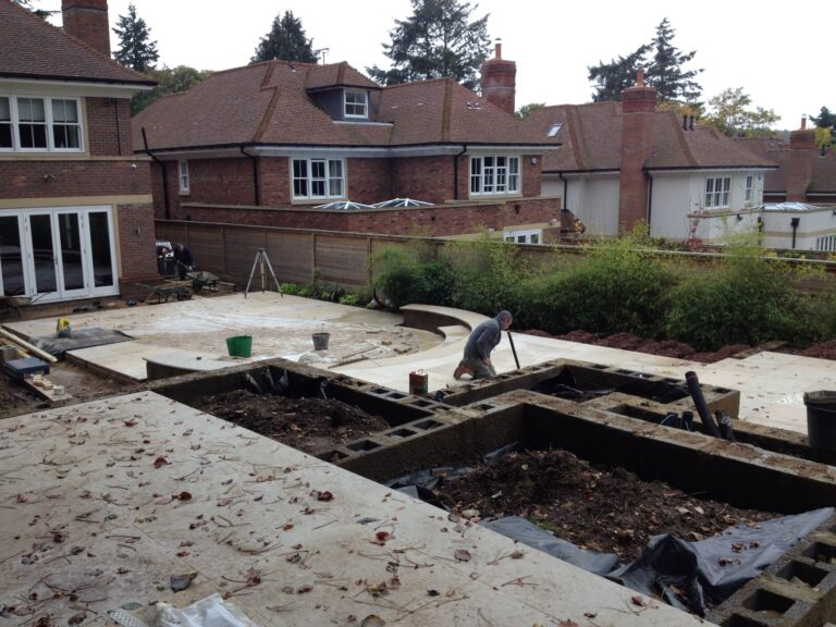 Echipa de la Greenes Landscape Design, împreună cu Joanne Massey, a redesenat complet curtea. Terasa a fost extinsă, iar diferența de nivel a fost valorificată printr-o scară curbată, care duce acum spre o zonă mai mare, amenajată special pentru întâlniri și relaxare.