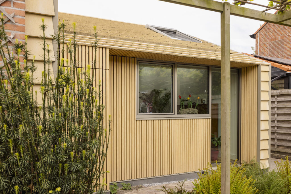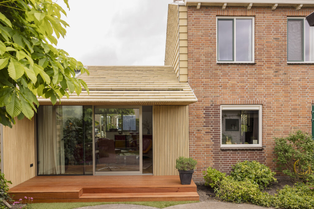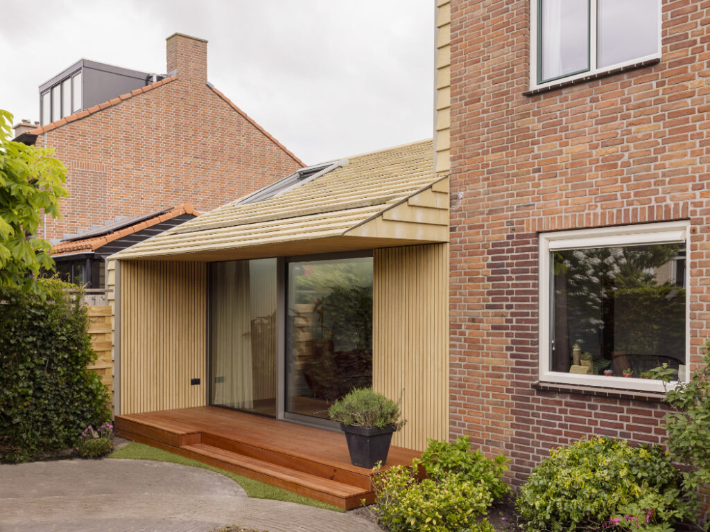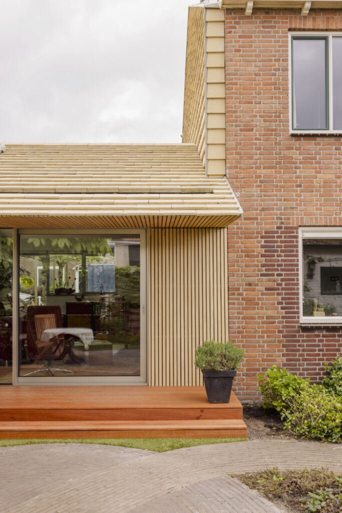Foto: Jordi Huisman Cum extinzi o casă: soluție sustenabilă pentru a câștiga spațiu 2 martie 2026 | Proiecte de case | Petri Radulescu Distribuie articolul pe: Extinderea unei case poate fi mai mult decât o simplă mărire a suprafeței. Poate fi o ocazie de a transforma complet locuința, astfel încât să devină mai eficientă, mai luminoasă și mai potrivită pentru viața de familie. Un exemplu bun vine din Olanda, unde biroul derksen windt architecten a realizat o extindere spectaculoasă pentru o casă aflată aproape de dunele din Monster. Casa făcea parte dintr-un șir tipic de locuințe construite după război. Astfel de case sunt des întâlnite în Olanda: sunt amplasate în zone bune, sunt solide, dar nu mai corespund standardelor actuale. Izolația este slabă, instalațiile sunt vechi, de multe ori pe gaz, iar spațiul interior este adesea prea mic pentru o familie modernă. În cazul acestei locuințe, problema era și mai vizibilă. Fiind aproape de dune, zona este expusă la vânt puternic. Iarna, casa se răcea rapid. În plus, pereții laterali mari, fără ferestre, pierdeau multă căldură. Proprietarii și arhitecții au decis că o simplă renovare nu este suficientă. Au ales să extindă casa și, în același timp, să o aducă la standardele actuale de confort și eficiență energetică. Noua extindere este construită integral din lemn și este placată cu plăci ceramice elegante. Acestea continuă și peste fațada veche, care a fost reizolată. Astfel, vechiul și noul se unesc într-un singur volum coerent. În același timp, casa a fost echipată cu instalații complet electrice, fără gaz. Practic, extinderea nu a adus doar mai mult spațiu, ci și o schimbare majoră în modul în care funcționează întreaga locuință. Un aspect important atunci când extinzi o casă este lumina naturală. În acest proiect, extinderea a fost gândită în jurul soarelui și al relației cu exteriorul. Lumina pătrunde prin retrageri în volum, ferestre de dimensiuni diferite și luminatoare în acoperiș. Casa veche era mai închisă, cu puține deschideri. Extinderea funcționează acum ca o zonă de tranziție între interior și grădină. Când treci din casa veche în spațiul nou, acesta se deschide larg către exterior. Streașinile accentuează această legătură și oferă protecție în același timp. Materialele au fost alese cu grijă, având în vedere sustenabilitatea. Fațada ceramică este produsă în Germania după principiul „cradle-to-cradle”, ceea ce înseamnă că materialele pot fi refolosite sau reciclate complet. Pardoseala nouă de la parter este din lemn, în loc de beton, reducând astfel amprenta de carbon. Fiecare detaliu a fost atent gândit și executat cu precizie, astfel încât îmbinările dintre lemn și ceramică, dintre vechi și nou, să fie curate și durabile. Foto: Jordi Huisman CITEȘTE ȘI: Arhitectură la munte: o poveste tradițională spusă în lemn și piatră Căsuța de deasupra garajului: soluție sustenabilă pentru un spațiu mic Arhitectura maramureșeană renăscuta, într-un proiect interpretat modern Distribuie articolul pe: Petri Radulescu