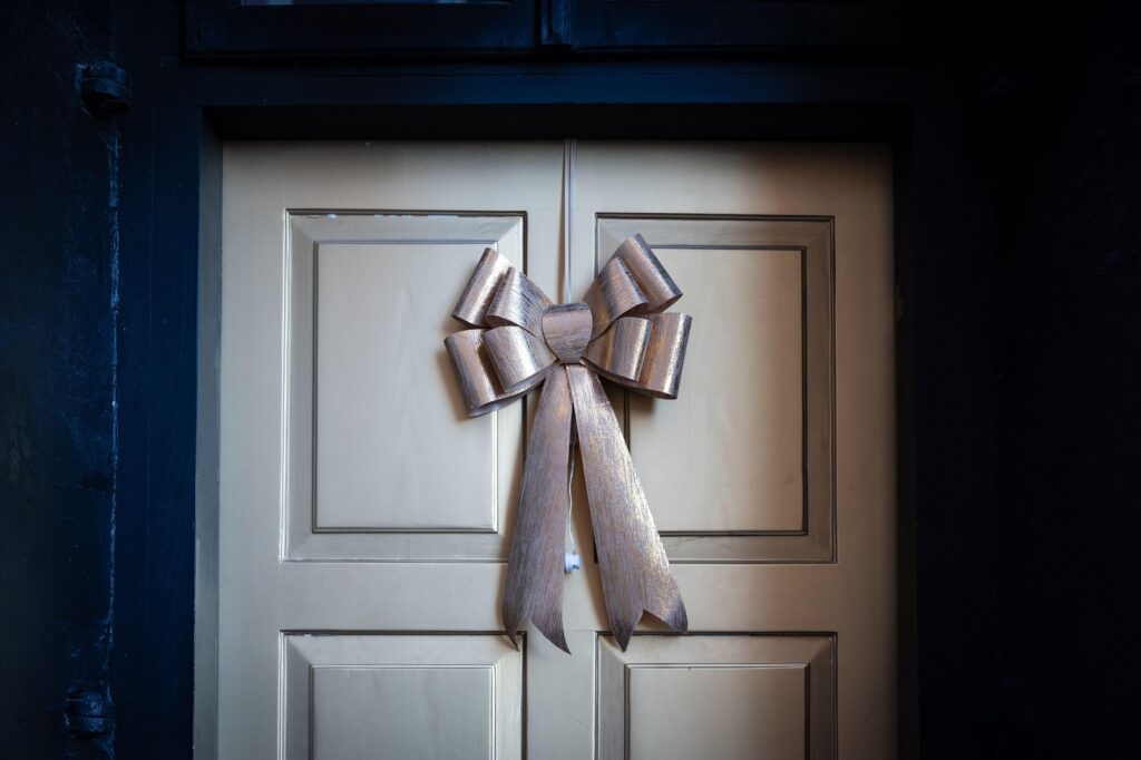 • Pe ușa de la intrare – pentru a-i întâmpina pe invitați cu un decor elegant, fără a aglomera holul.