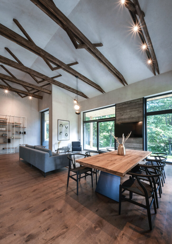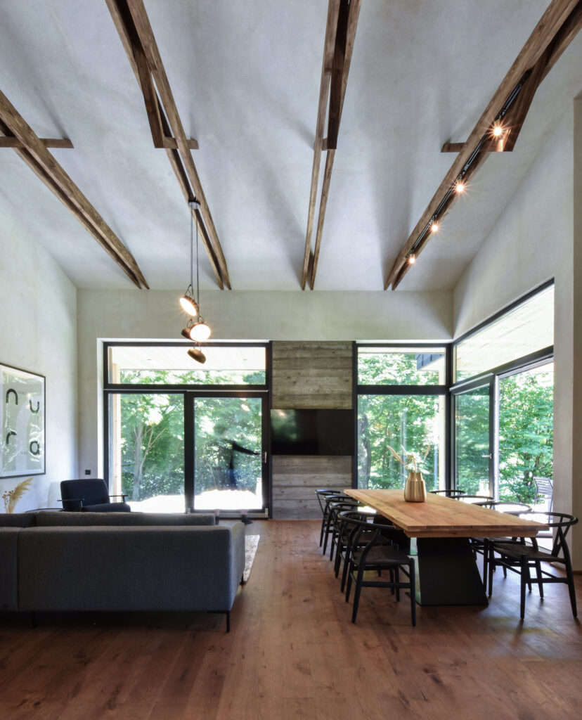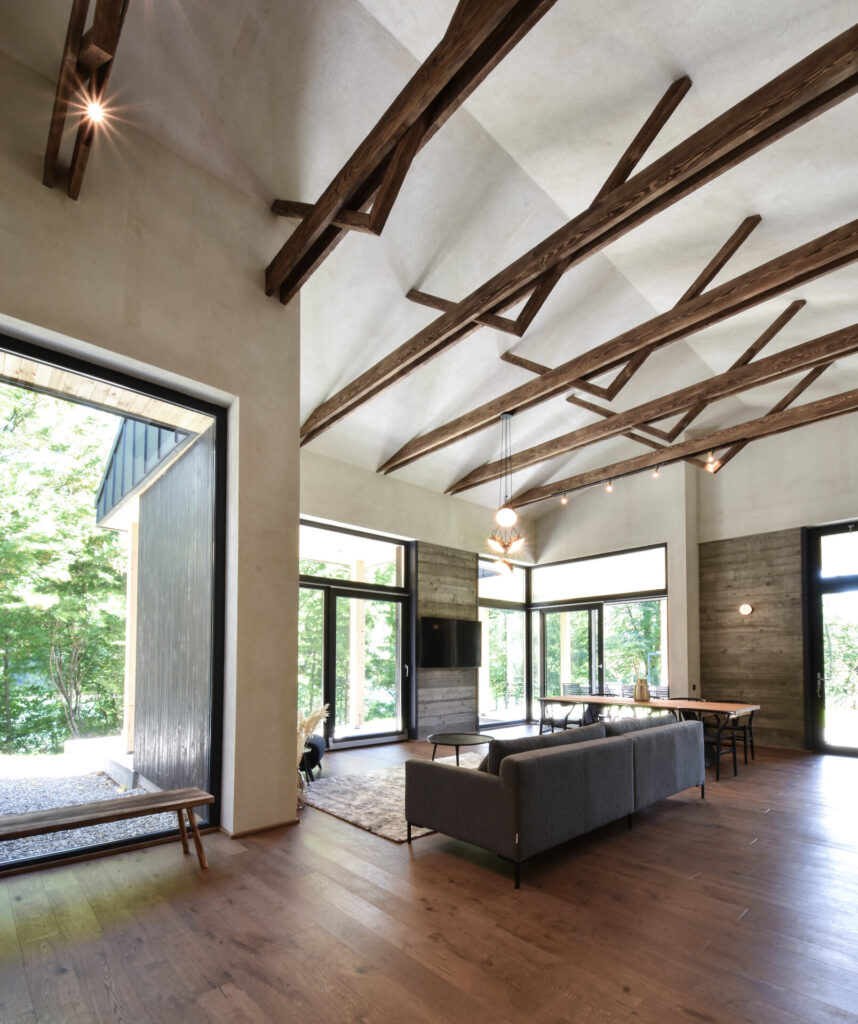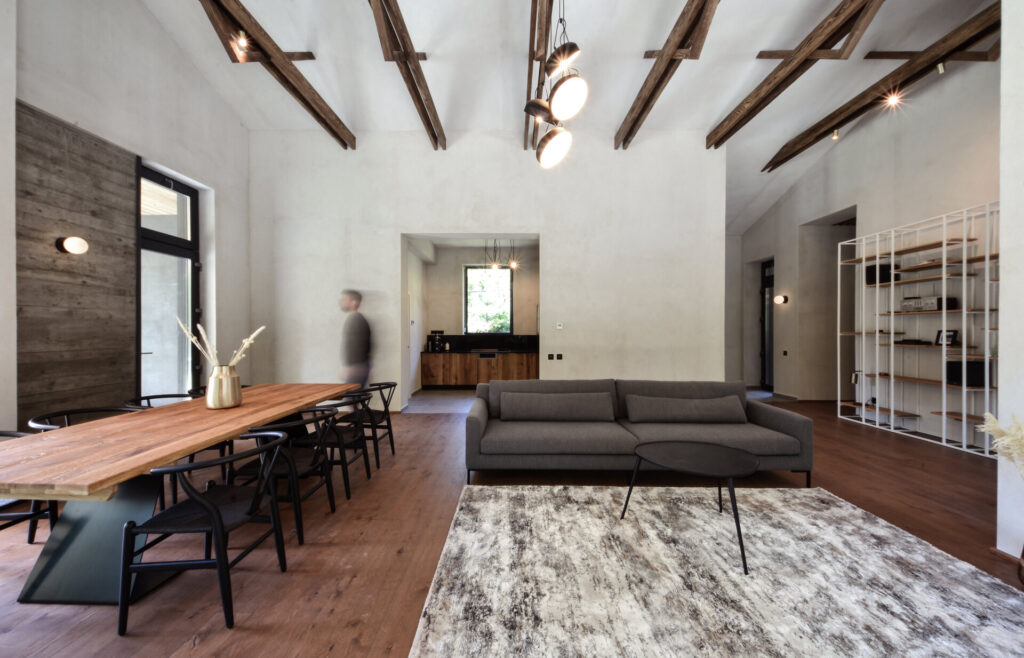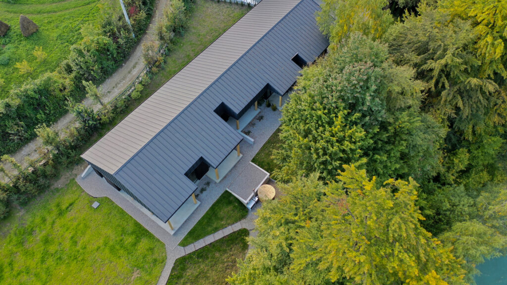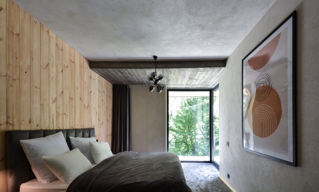 Foto: Vladimir Mîndru Joc de linii și materiale, într-o casă cu terasă de pe Valea Doftane 20 aprilie 2026 | Proiecte de case | Petri Radulescu Distribuie articolul pe: Proiectul acestei case de pe Valea Doftanei poate fi descris prin două idei simple: echilibru și discreție. Arhitectura nu încearcă să impresioneze prin dimensiuni sau forme complicate, ci prin modul în care se integrează în peisaj. Totul este gândit astfel încât locuința să se „așeze” firesc în natură, fără să o domine. Casa este orientată spre lac, iar această relație cu peisajul este vizibilă în fiecare detaliu. Toate camerele au terase acoperite, deschise către apă, oferind spații ideale pentru relaxare. În schimb, partea dinspre drum este mult mai discretă. Aici, un portic marchează intrarea și creează o trecere treptată de la spațiul public la cel privat, fără a expune interiorul. Volumul casei preia caracteristicile terenului și se adaptează acestuia, atât ca formă, cât și ca materiale. Nimic nu pare forțat sau exagerat. Este o arhitectură calmă, care pune accent pe proporții și pe relația dintre interior și exterior. Materialele alese sunt simple, dar atent combinate. La exterior, betonul aparent oferă un aspect solid și sobru, dar este echilibrat de lemnul folosit pentru placări, care aduce căldură și naturalețe. Contrastul dintre aceste materiale creează un efect plăcut, fără a fi strident. În interior, atmosfera devine mai caldă și mai primitoare. Lemnul este prezent în mobilier și finisaje, iar culorile sunt mai blânde. Dormitoarele au pardoseli moi, care sporesc confortul, iar spațiile sunt gândite pentru relaxare. Proiectul echipei arh. Vladimir Mîndru, arh. Irina Lupu și arh. Rareș Fotău-Cojocaru a făcut parte din proiectele care au fost înscrise de arhitecți la secțiunea Locuințe Individuale a Bienalei Naționale de Arhitectură 2023. Bienala Națională de Arhitectură – expoziție concurs organizată de Uniunea Arhitecților din România o dată la doi ani – include acordarea unor premii la 19 secțiuni, printre altele pentru proiecte de arhitectură interioară și exterioară, design interior și design de obiect, restaurare a unor clădiri, revitalizare rurală, dar și pentru fotografie ori film de arhitectură. Foto: Vladimir Mîndru CITEȘTE ȘI: Extensie modernă pentru o locuință rurală: casa de la marginea satului Transformări posibile: dintr-o casa comună, o locuință modernă Arhitectura ca inspirație: formă modernă, material tradițional Distribuie articolul pe: Petri Radulescu