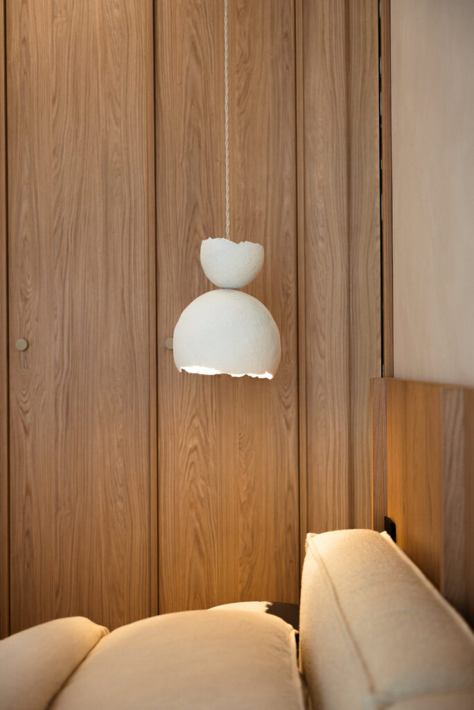 Lumina este tratată cu aceeași grijă. În locul unor corpuri de iluminat puternice și directe, au fost alese surse indirecte, care scaldă pereții și scot în evidență texturile. Lumina nu agresează, ci învăluie. Seara, atmosfera devine și mai intimă, iar suprafețele capătă profunzime.