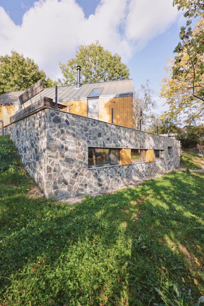 Ambele volume, cel din piatră și cel din lemn, sunt exemple de case ecologice, cu un consum redus de energie. Forma simplă, materialele naturale și integrarea în teren ajută la obținerea unei locuințe eficiente din punct de vedere termic, prietenoasă cu mediul și economică pe termen lung.