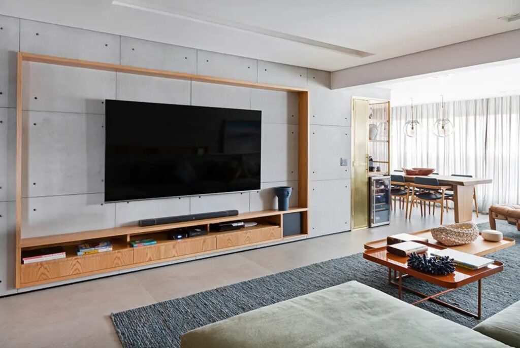 Această combinație de materiale, culori și texturi transformă apartamentul într-un loc modern, echilibrat și plin de personalitate. Lemnul adaugă confort, betonul oferă un aer contemporan, iar culoarea vine cu energia necesară pentru un design unic și bine definit.