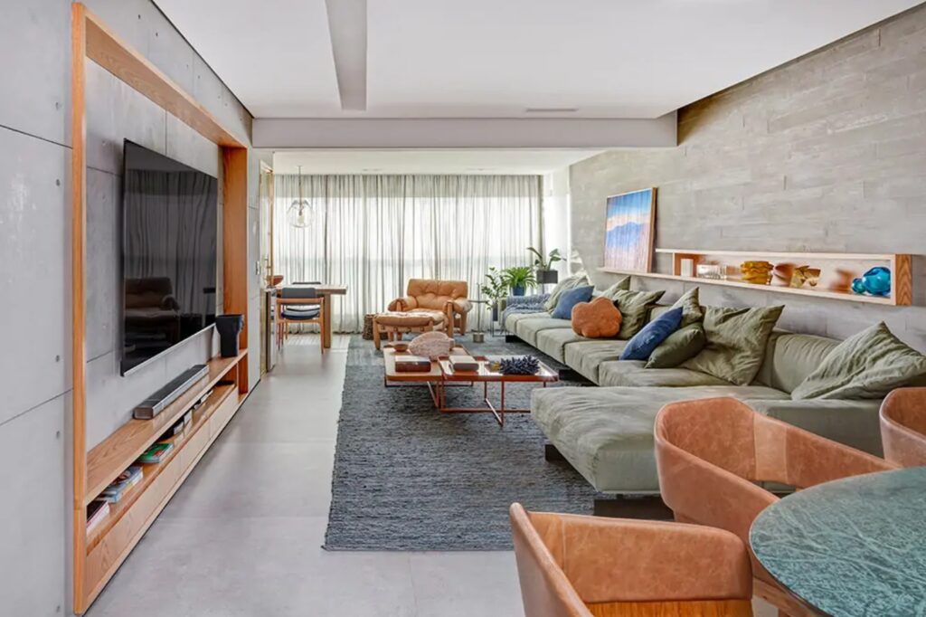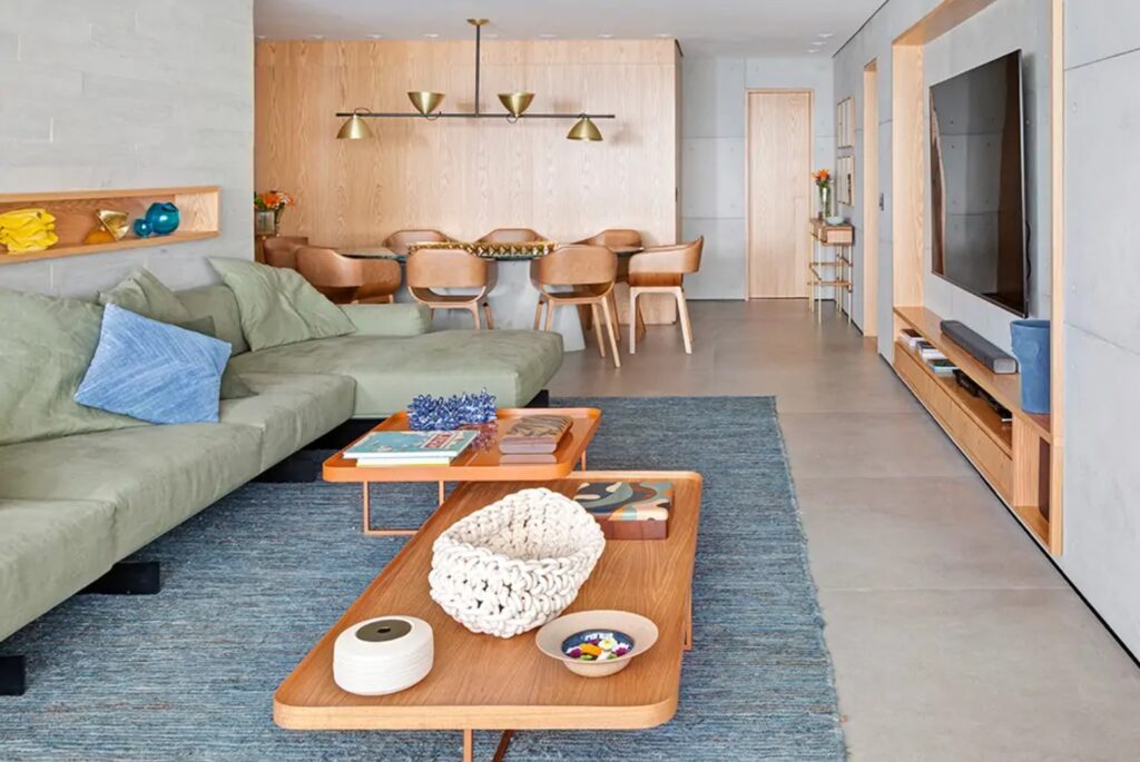 Mixul de lemn, beton și culoare dă farmec amenajării acestui apartament
