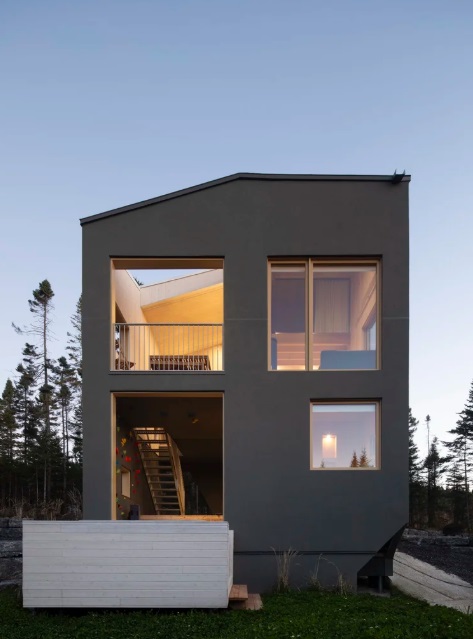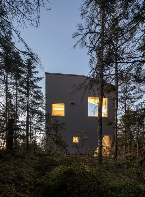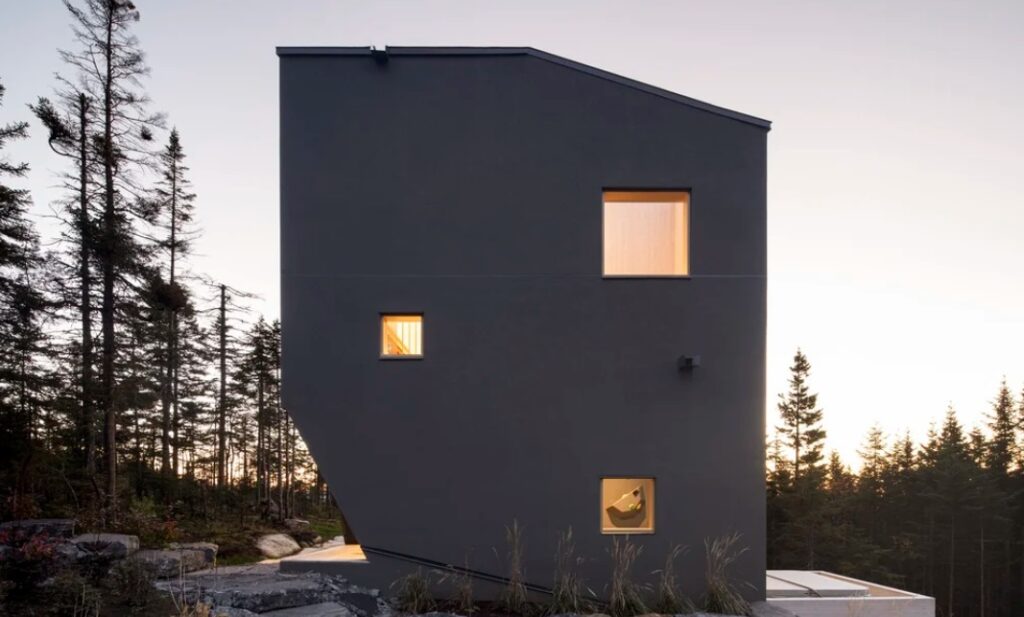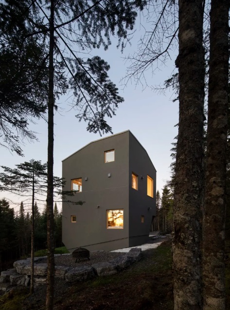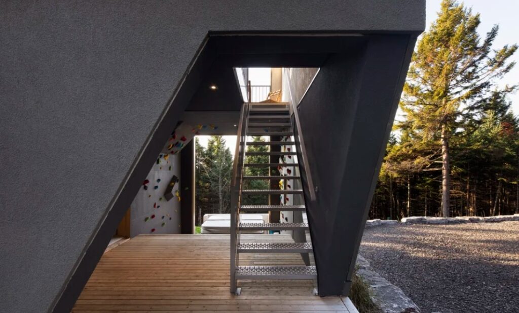 Foto: Adrien Williams / quinzhee.ca O cabană în mijlocul pădurii surprinde prin spațiu și lumină 8 decembrie 2025 | Proiecte de case | Petri Radulescu Distribuie articolul pe: În inima muntelui Le Maelstrom, din apropiere de Lac-Beauport, se află Blok, o cabană modernă gândită ca refugiu pentru pasionații de cățărare și iubitorii de natură. Așezată spectaculos chiar pe marginea unei stânci naturale folosite pentru escaladă, construcția devine un punct de belvedere, un adăpost și un loc de întâlnire, toate în același timp. O arhitectură inspirată de stâncă Forma asimetrică a cabanei, cu muchii clare și linii tăioase, amintește de un bloc de piatră desprins din munte. Exteriorul, finisat cu un tencuială gri închis, accentuează această senzație de monolit brut, modelat doar de natură. Ferestrele sunt dispuse neregulat, asemenea prizelor de pe un traseu de escaladă. Privite din exterior, ele creează o compoziție dinamică, care invită privirea să urce pe fațadă, asemenea unui cățărător care urmărește traseul până în vârf. Ceea ce face cabana cu adevărat specială este felul în care îmbină spațiile încălzite cu cele exterioare, protejate, oferind senzația că te afli în natură chiar și atunci când stai la adăpost. Un acces surprinzător și spații gândite pentru relaxare Intrarea se face printr-un colț decupat al volumului, un detaliu geometric care devine și poartă simbolică spre interior. Prima zonă pe care o descoperi este una exterioară, dar acoperită, ferită de ploaie, vânt și de priviri indiscrete. Aici se creează o tranziție calmă între pădure și cabană, un loc unde te poți opri, respira aerul rece al muntelui și lăsa în urmă restul lumii. La parter, cei pasionați de cățărare au la dispoziție pereți special amenajați pentru antrenament, chiar și în zilele în care vremea nu este prietenoasă. Tot aici se află și un spa relaxant, perfect pentru momentele dintre două urcări. Contrastul dintre efort și destindere transformă acest nivel într-un refugiu complet și funcțional. Lumina naturală, elementul central al etajului Urcând la etaj, cabana se deschide către exterior printr-o terasă spațioasă, unde poți găti, lua masa și petrece timpul cu prietenii. De aici, priveliștea asupra naturii este amplă și neîntreruptă, pădurea pare să intre în casă, iar muntele devine o prelungire firească a terasei. Spațiile interioare încălzite se întind pe două niveluri. La parter se află dormitoarele, liniștite, simple și orientate spre pădure. Atmosfera este calmă, retrasă, perfectă pentru odihnă. La etaj, zona de zi beneficiază din plin de lumină naturală datorită ferestrelor mari și poziționării cabanei pe stâncă. Tot aici, deasupra bucătăriei, se găsește o mezzanină generoasă, ideală pentru găzduirea mai multor vizitatori sau pentru transformarea într-un spațiu de relaxare suplimentar. Cald și natural la interior, robust la exterior Toate spațiile, indiferent dacă sunt interioare sau exterioare, sunt placate cu lemn. Această alegere creează o continuitate vizuală care încălzește atmosfera și face legătura dintre cabană și natură. În contrast puternic, exteriorul rămâne mineral, rece și monolitic, o „coajă” rezistentă, care protejează un interior cald și primitor. Blok nu este doar o cabană, ci o experiență. O combinație între arhitectură contemporană, funcționalitate și respect pentru natură, care transformă o simplă escapadă la munte într-o poveste despre liniște, aventură și lumină. Foto: Adrien Williams / quinzhee.ca CITEȘTE ȘI: Casă cu etaj și roți: așa arată confortul în spații mici O casă lângă pădure, unde lemnul joacă rolul principal Căsuțe în copac – proiecte atipice pentru copacul din curte Distribuie articolul pe: Petri Radulescu