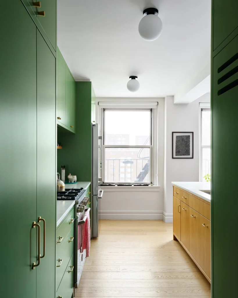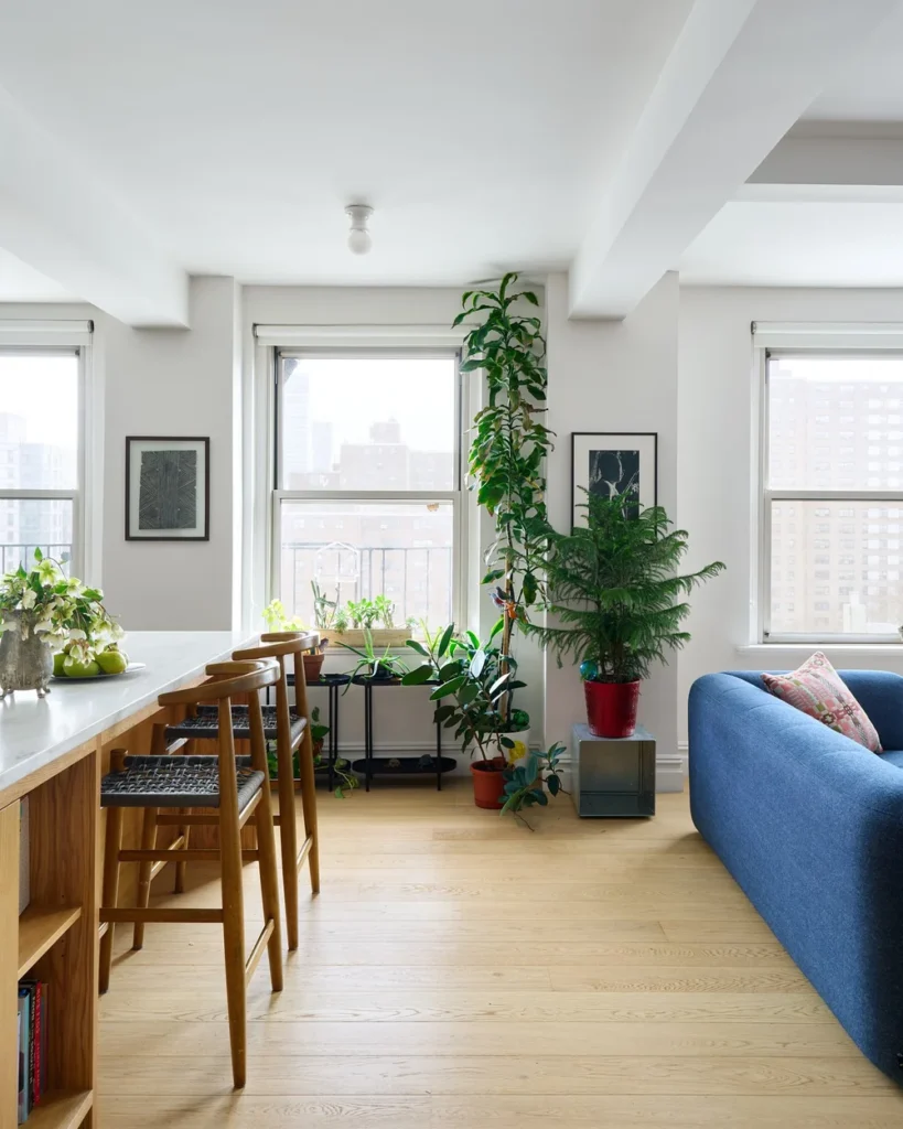 Foto: studioofficina.com Simplu, actual și foarte personal este acest apartament din New York 2 februarie 2026 | Case și amenajări | Petri Radulescu Distribuie articolul pe: La începutul pandemiei, o familie tânără din New York s-a confruntat cu o problemă devenită brusc foarte comună: lipsa de spațiu. Cu doi copii mici și mult timp petrecut acasă, apartamentul cu un dormitor nu mai era suficient. Soluția a venit din imediata vecinătate – apartamentul alăturat, despre care vecina vorbise de ani buni că l-ar putea vinde. Momentul potrivit a sosit, iar ideea de a uni cele două locuințe a prins contur. Fiecare apartament avea deja atuuri importante: livinguri și dormitoare generoase, ferestre mari orientate spre vest și o priveliște clasică de Manhattan. Provocarea nu a fost lipsa de lumină sau de potențial, ci modul în care cele două spații puteau deveni o singură locuință coerentă. Între ele se afla un perete masiv, plin de țevi și coloane tehnice, care făcea imposibilă o legătură directă simplă. Încă din primele etape, obiectivul a fost clar: crearea unui apartament deschis, luminos și ușor de parcurs, care să nu pară niciodată „lipit din două bucăți”. Au fost desenate numeroase variante de plan, fiecare încercând să folosească cât mai bine ferestrele existente și să aducă lumina naturală în zona principală de zi. Rezultatul este un spațiu amplu de living, bucătărie și dining, care funcționează ca inima casei. Lumina pătrunde din mai multe direcții, iar senzația este de aerisit și relaxat, fără compartimentări inutile. Circulația dintre camere este firească, iar traseele sunt clare, un aspect esențial într-un apartament de oraș. Pentru proprietari, arta și obiectele personale au fost foarte importante. Noul living oferă un perete lung, perfect pentru tablouri și lucrări de artă, iar aproape de intrare a fost creat un loc special pentru o fotografie de mari dimensiuni, mult dorită. Aplice simple, albe, o pun în valoare, iar dedesubt există o masă mică, practică, pentru lucrurile de zi cu zi. Intrarea în apartament este gândită astfel încât privirea să fie atrasă imediat spre ferestrele mari și spațiul deschis. Este un gest simplu, dar eficient, care face locuința să pară primitoare încă de la primul pas. Lumina naturală este pusă și mai mult în valoare de plantele de interior, prezente în mai multe colțuri ale casei. Bucătăria este deschisă către living, iar insula centrală devine un punct de legătură între gătit, stat la povești și activitățile copiilor. Inițial, s-a dorit păstrarea parchetului vechi, din perioada interbelică, însă acesta nu a putut fi salvat. A fost înlocuit cu un parchet nou din stejar alb, cu plăci late și lungi, care reflectă lumina și accentuează senzația de spațiu. Este o alegere caldă, ușor de integrat și foarte potrivită pentru un apartament de familie. Bucătăria este amplasată lângă peretele tehnic care, altădată, separa cele două apartamente. Aici au fost integrate discret o cămară și spațiul pentru mașina de spălat și uscător, astfel încât zona să rămână ordonată. Proprietarii și-au dorit dulapuri verzi, iar după mai multe teste a fost aleasă nuanța „Calke Green” de la Farrow & Ball – un verde profund, care își schimbă subtil aspectul pe parcursul zilei. Combinația cu stejar alb și mânere din alamă adaugă un plus de rafinament fără a încărca spațiul. Depozitarea a fost o prioritate în întreg apartamentul. Insula bucătăriei include dulapuri pentru veselă și rafturi deschise pentru cărți de bucate, iar detaliile decorative nu lipsesc: plăci ceramice Zellige lucrate manual, rafturi din lemn pentru obiecte personale și mici amintiri. Chiar dacă structura clădirii a impus prezența unor stâlpi și a unor pereți neregulați, spațiul de dining a fost bine rezolvat, cu o masă mare, potrivită pentru viața de familie. Lângă intrare a fost creat un dressing generos, iar un hol conduce spre dormitorul matrimonial. Baia principală este un spațiu mic, dar cu multă personalitate. Plăcile ceramice albastre, montate de la podea până la tavan, creează o atmosferă intimă și sofisticată. Mobilierul simplu din stejar alb echilibrează intensitatea culorii. Dormitorul copiilor a primit un element-cheie: o fereastră mare, orientată spre Central Park. Realizarea ei a fost un proces complicat, dar priveliștea finală transformă complet camera. Foto: studioofficina.com CITEȘTE ȘI: Cum arată o casă în care nu există frică de culoare O baie retro care păstrează perfect spiritul casei Interior contemporan, unde lemnul în ton cald dă tonul amenajării Distribuie articolul pe: Petri Radulescu