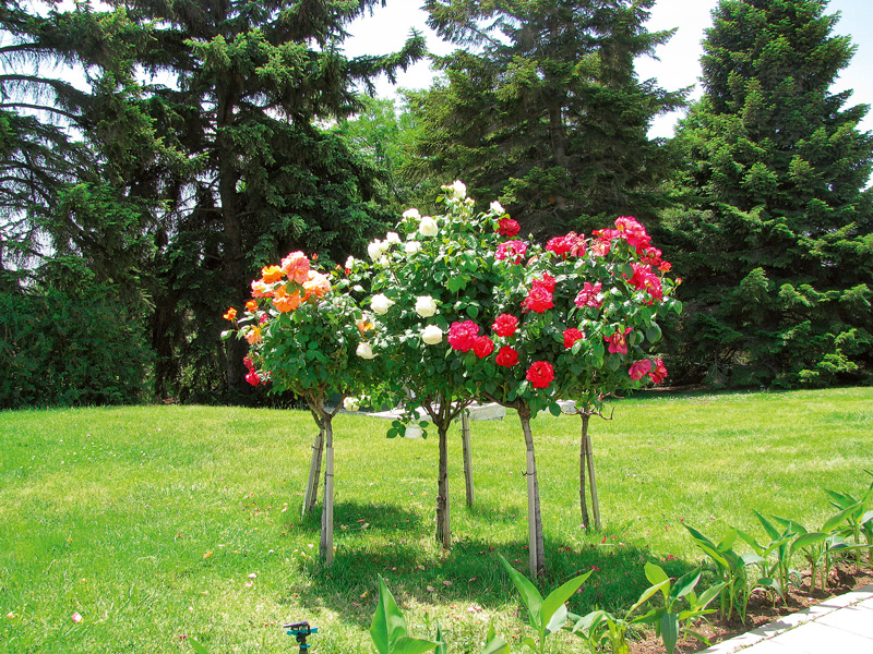 Trandafirii care cresc pe trunchi arată și ei foarte bine și reprezintă o alternativă la trandafirii “clasici”. Când îi plantezi, așază tulpina puțin oblic și apoi leag-o cu un țăruș vertical. De asemenea, este bine ca toamna să protejezi coroana cu materiale de protecție permeabile la aer.
