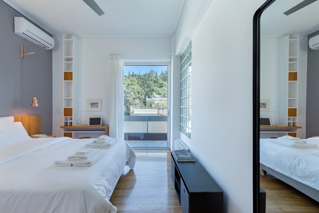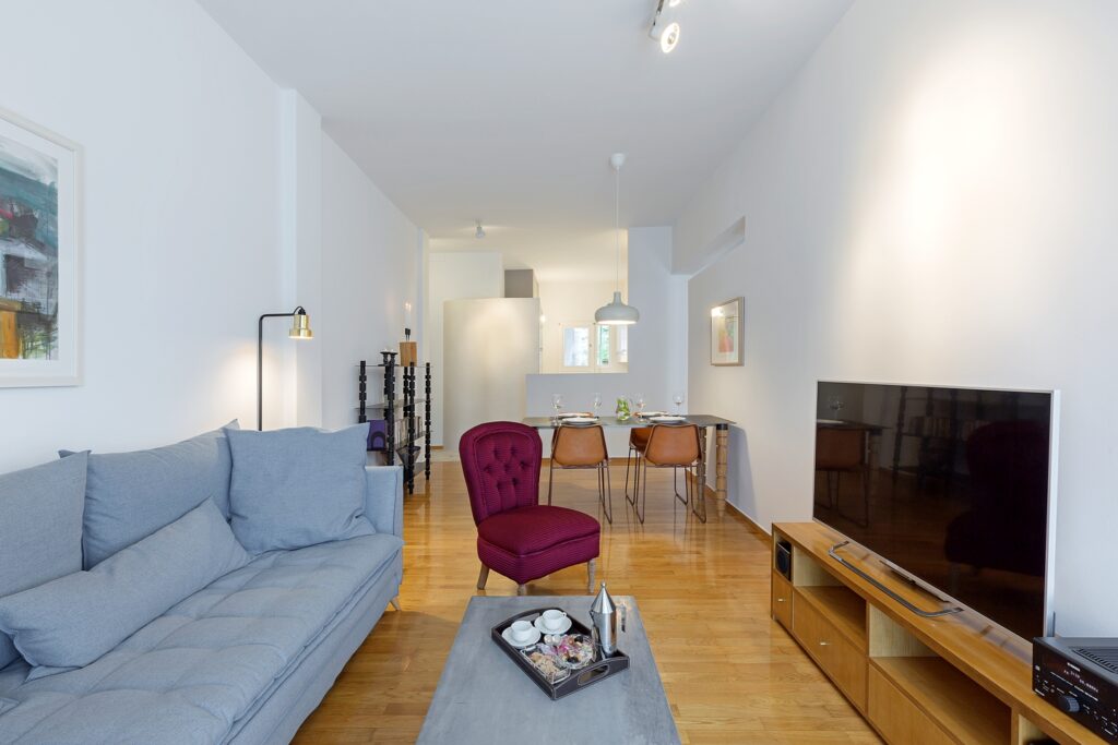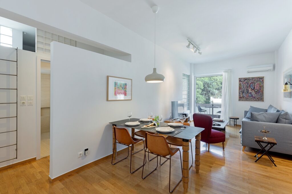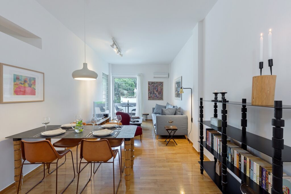În cartierul Mets din Athens, un apartament situat la ultimul etaj a fost transformat complet pentru a deveni un spațiu modern, luminos și primitor. Locuința beneficiază de o poziționare privilegiată, oferind priveliști spectaculoase către Zappeion Hall, colina Lycabettus Hill și Ardittos Hill. Aceste deschideri către oraș joacă un rol esențial în definirea atmosferei generale a apartamentului.