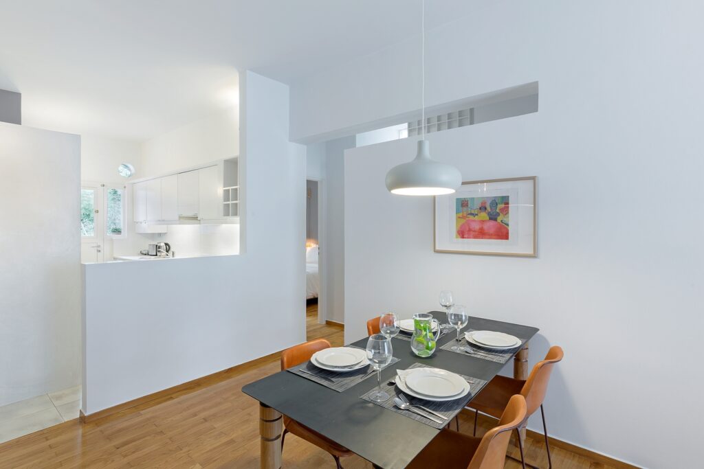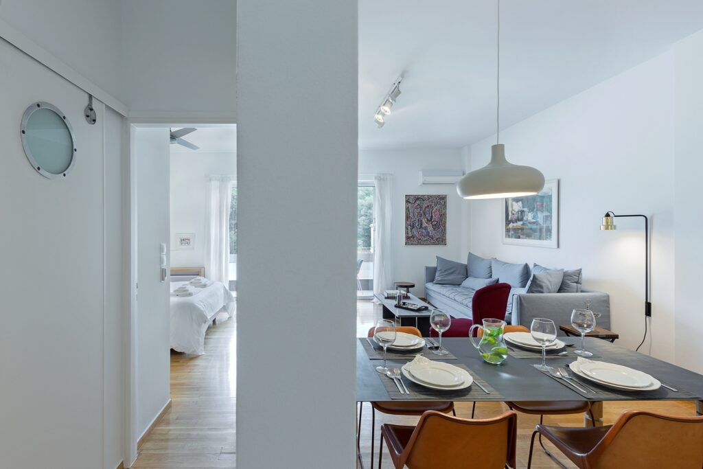 Această decizie a pus în valoare configurația „through and through” a apartamentului, adică deschiderea pe două părți, care permite luminii naturale să circule liber dintr-o parte în alta. Rezultatul este un interior aerisit, în care fiecare colț beneficiază de lumină și perspectivă.