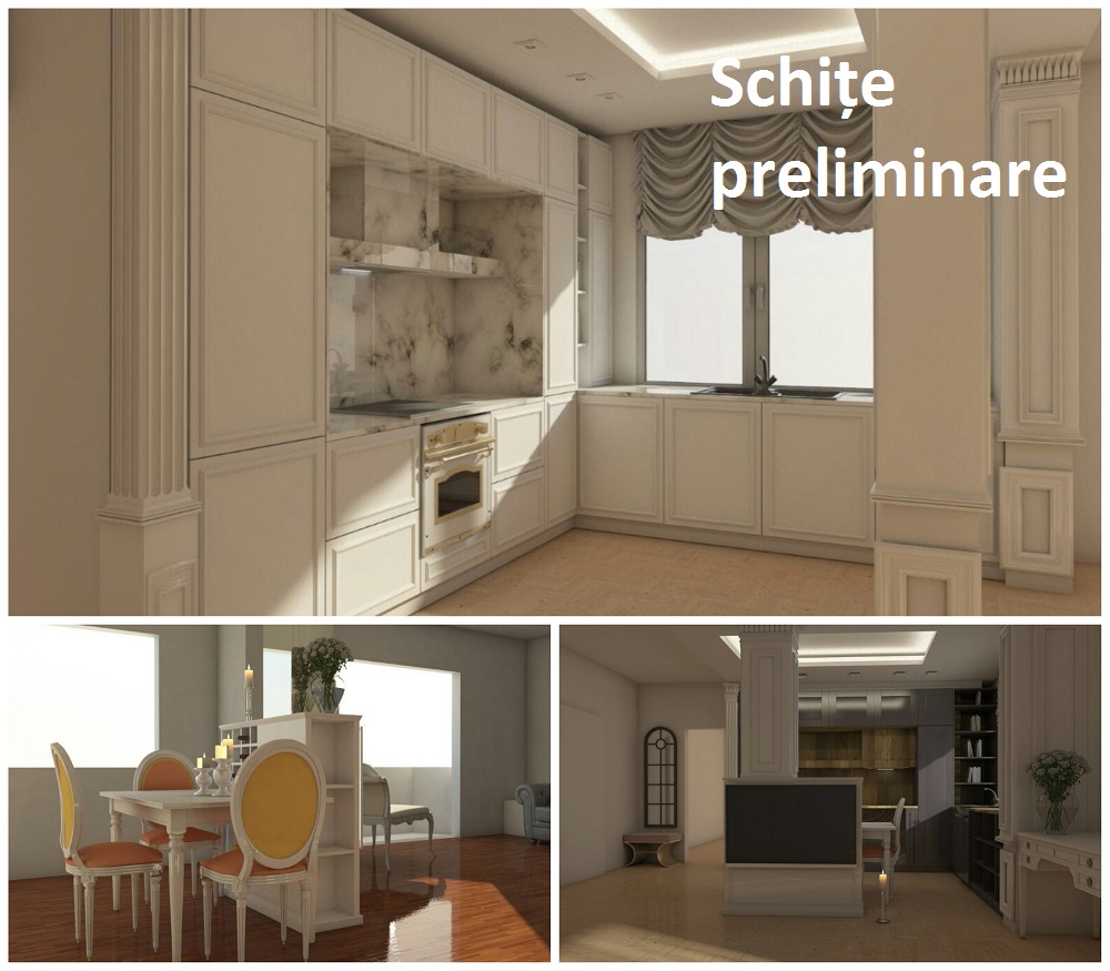 Victorian Chic – Amenajare de apartament clasică, în centrul Bucureștiului 14 martie 2018 | Idei practice | Otilia Ignat Distribuie articolul pe: De secole, stilul de amenajare clasic fascinează prin maniera sofisticată de a pune în valoare interioarele. Emblematic pentru curțile regale și saloanele aristocraților, acest stil și-a găsit loc într-un mod firesc și într-un apartament de 2 camere din zona Victoriei, finalizat la începutul anului 2018. Situat la etajul 5 al unui bloc construit în 1994, apartamentul de 60 mp beneficiază de o vedere panoramică asupra pieței Victoriei. Proprietarii își doreau inițial să îl decoreze într-un stil de lux, pentru a îl oferi spre închiriere, însă amenajarea le-a depășit așteptările și au hotărât să îl vândă, valoarea sa fiind semnificativ ridicată prin noua amenajare. Au apelat la designerul de interior Georgiana Ursache deoarece proprietarei i-a plăcut mult amenajarea clasică a Georgianei, descoperită în revista Casa Mea. Spațiul original era folosit pentru birouri, separate de un stâlp de rezistență care a dat bătăi de cap echipei de proiectare, fiind în cele din urmă integrat estetic în compoziția neoclasică și astfel transformat în punct forte al amenajării. În etapa de șantier, s-a refăcut fiecare colț al casei, s-a intervenit asupra țevilor și a instalațiilor sanitare și electrice, s-au înlocuit ușile și geamurile – nu se investise deloc în apartament de când se ridicase construcția. Beneficiarii și-au dorit o amenajare clasică, marcată de coloane decorative, tapet sofisticat, cornișe și elemente bogat ornamentate. Pentru a nu încărca excesiv spațiul (un risc al proiectelor clasice), s-au propus nuanțe neutre, care să nu se demodeze. În toate încăperile s-au ales finisaje prețioase (de la travertin la lemn masiv și parchet stratificat)– într-o amenajare clasică reușită, materialele ietine nu își au locul, creând impresia de kitsch. Pentru configurarea spațiilor au existat mai multe propuneri – inclusiv integrarea băii matrimoniale în dormitor și delimitarea sa printr-un perete de sticlă; s-a renunțat la idee din rațiuni de spațiu – dormitorul ar fi devenit neîncăpător. Stâlpul a fost propus la un moment dat și cu o placare de oglindă, pentru a oferi fluiditate spațiului. Holul de intrare anunță tema de amenajare a locuinței, prin mobilierul clasic și detaliile rafinate. S-a optat pentru o zonă de zi spațioasă (22,5 mp), open space cu bucătăria de 12 mp. Stâlpul menționat anterior a devenit parte a elementului de mobilier care delimitează cele două zone, folosit ca suport de televizor spre living și corp de depozitare de vinuri înspre bucătărie. Amenajarea s-a derulat de altfel de la acest stâlp, tratat ca o coloană, decorată cu cornișe și inserții de auriu antichizat de la FS Design. Aceste detalii sunt preluate în mobilierul de bucătărie, realizat din MDF și lemn masiv de tei vopsit ivoire mat, cu traforaje realizate la CNC, decorat cu inserții aurii de firma Tehnic Mob. Acesta este dispus pe toată înălțimea camerei și pus în valoare prin spoturi încastrate în tavan. Pentru iluminarea generală, s-a ales un candelabru din bronz și cristale, iar pereții dintre corpurile de mobilier au fost finisați cu vopsea decorativă într-o nuanță caldă de ocru. Livingul a fost tratat ca un „salon de primire”, omagiu adus tradițiilor aristocratice. Cele două canapele Divani e Sofa au o textură catifelată, ce invită la relaxare, fiind completate de mobilier cu linii clasice. S-au creat scafe cu spoturi și s-au adăugat elemente de accent. Toate elementele decorative folosite în amenajare mențin linia clasică și sporesc farmecul acestui interior – de la corpurile de iluminat la vaze, oglinzi, lumânări, sfeșnice și alte accesorii. Dorm itorul se distinge prin baldachinul poziționat deasupra patului, element asociat cu luxul și opulența regală. Patul din catifea este de la Divani e Sofa, fabricat în Italia. Dressingul este fabricat în stil clasic, din lemn masiv de tei, cu lezene și inserții aurii și, deși ocupă toată lungimea peretelui, nu încarcă spațiul, integrându-se perfect în ambient. Dispunerea acestuia pe toată înălțimea camerei, finisajul deschis și dispunerea oglinzilor pe cele 3 uși centrale sunt detaliile care preiau din masivitatea acestuia. Ca și în living, perdelele de la Linea Oro sunt detalii elegante ce încadrează plăcut ferestrele generoase și oferă intimitate spațiului. Suprafața amplă a camerei a permis și amplasarea unei măsuțe de toaletă, un alt detaliu aristocratic ce va fi cu siguranță pe placul viitorilor proprietari. Tapetul din dormitor este de la FS Design, din vinyl , producție Italia. Baia de numai 4,3 mp a fost ingenios configurată. Jocul de nuanțe al travertinului este preluat de culoarea mobilierului, pardoselii și accentelor decorative. Bateriile clasice sunt în ton cu amenajarea. Dușul cu scurgere în pardoseală și panourile de sticlă creează un spațiu unitar. Baia este amenajată cu produse Delta Studio. S-a optat pentru tarvertin mat (antiderapant) atât pe pereți cât și pe pardoseală. Pe terasă, s-a amenajat un colț de savurat povești și… ceaiul de la ora cinci. Această amenajare din București este un bun exemplu al faptului că stilul clasic se potrivește în orice interior și tip de locuință, chiar și la bloc, dacă se ține cont de câteva reguli: evitarea supraîncărcării, optarea pentru nuanțe naturale și finisaje de foarte bună calitate, adaptarea la spațiul existent și menținerea unor proporții armonioase. Scenografia de mai sus combină elemente-cheie ale stilului clasic (profile decorative, cornișe, candelabre, finisaje naturale, inserții de auriu, tapet etc.) în proporții echilibrate, atent dozate astfel încât să nu încarce o încăpere cu înălțime 