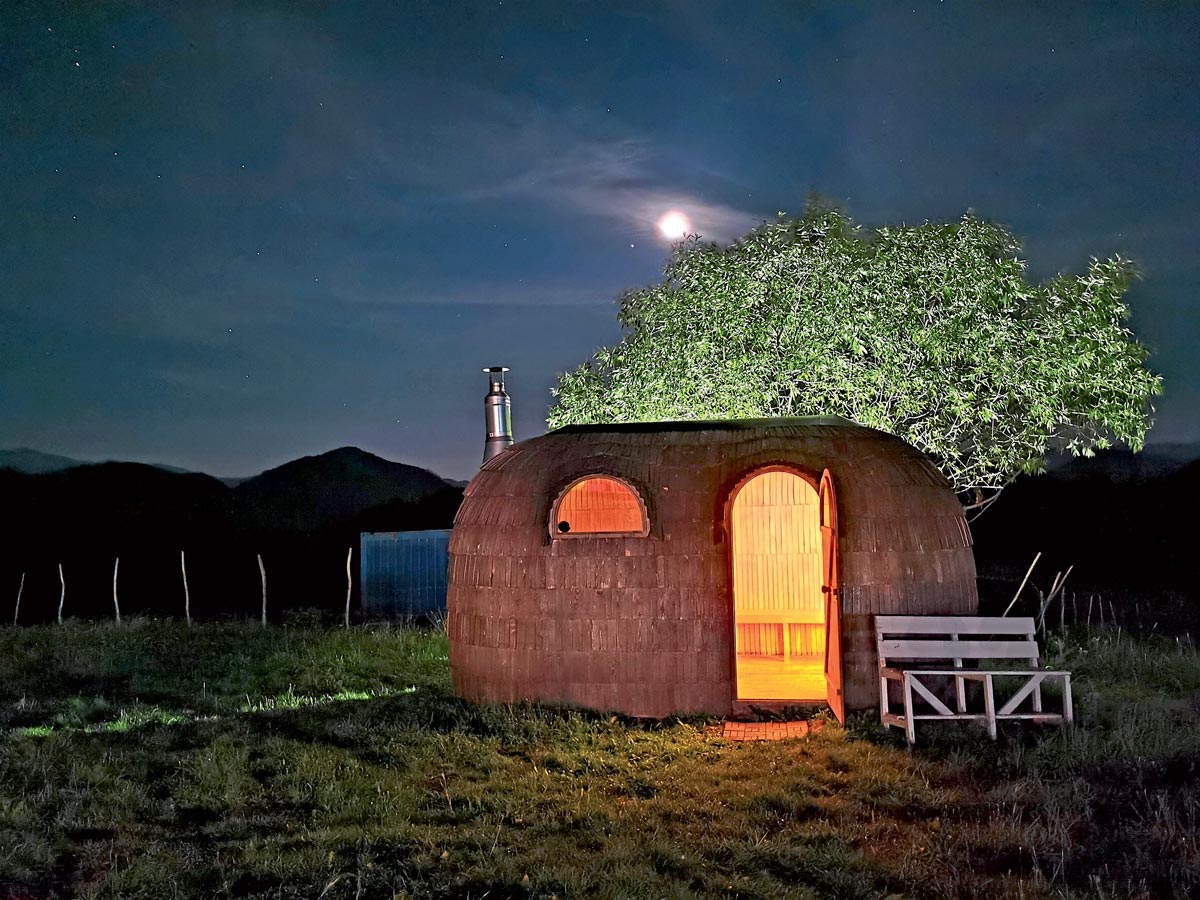 Vine curând vremea pentru glamping! 5 mai 2020 | Ecologie și sustenabilitate | Otilia Ignat Distribuie articolul pe: În mijlocul naturii, înconjuraţi de munţii Piatra Craiului şi Bucegi, am făcut cunoştinţă cu Alina şi Răzvan Marinescu, spirite cu idei inovatoare. Ei au creat primul glamping din România şi ne‑au invitat să petrecem alături de ei clipe de neuitat în acest loc magic. Când ai admirat ultima dată stelele pe un cer clar, parcă încremenit, și te-ai confundat cu ele? La Ursa Mică Glamping Resort exact aceasta este senzația, că faci și tu parte din constelație. Alina și Răzvan i-au dat glampingului această denumire care se potrivește atât de bine în scenografia care se profilează în acest colț de rai. Hai să descoperim cum a luat ființă acest proiect: „Îndrăgostiți de natură și sport, am făcut cunoștință cu conceptul de glamping în Elveția și Italia. A fost minunat să ne imaginăm cum ar funcționa și în România, și în 2016 am deschis primul resort de glamping din România la Nucșoara, căruia i-au trecut pragul sute de oameni. La sfârșitul lui 2016 am început căutarea unui nou spațiu pentru un proiect mai mare Ursa Mică Glamping Resort. După multe vizionări, am ales cu inima noua locație în satul Ciocanu și am devenit noii proprietari ai acestui loc de poveste între Piatra Craiului și Bucegi, care se află la 1200 m altitudine. Ne-am dorit să păstrăm și să ducem mai departe munca de o viață a familiei Oncioiu, fostul proprietar. Am păstrat și recondiționat în stil tradițional casa părintească de pe această proprietate. Cu multă dragoste, cu multă muncă, dar și cu susținere din partea unor oameni minunați (foștii proprietari, angajați, vecini, prieteni, clienți, familie), proiectul nostru a crescut și iată-ne ajunși aici. Sperăm ca glampingul să se dezvolte responsabil și în armonie cu natura, așa cum a fost dintotdeauna ideea de a dormi într-un cort, fie el de lux sau obișnuit. Ne dorim ca din ce în ce mai mulți români să îndrăgească și să se bucure de conceptul de glamping. Din 2016 suntem reprezentanți CanvasCamp în România și în alte țări din Sud-Estul Europei, furnizând corturi de lux prin platforma noastră www.canvascamp.ro. În 2019 am lansat Huzur Glamping – Pop-up Glamping Anywhere – www.huzurglamping.com, un concept absolut nou pe piață, care aduce experiența glamping la cheie în diverse locații (spre exemplu, Domeniul Știrbey) și ocazii (SummerWell). Huzur Glamping poate fi semnătura unui eveniment creativ și cu adevărat deosebit – de la petreceri private, de nuntă sau botez și evenimente corporate la cazare pe durata festivalurilor”, povestește Alina. Ursa Mică Glamping Resort este la mai puţin de trei ore distanţă de Bucureşti şi o oră faţă de Braşov, în Comuna Dâmbovicioara, satul Ciocanu. Este într-o locaţie de poveste, cu acces facil prin faimosul culoar Rucăr-Bran, şi vă întâmpină cu toate utilităţile practice, funcţionale şi calitative necesare pentru a vă scrie în inimi povestea voastră la munte. Toate cele 12 corturi impermeabile au vedere spre panorama spectaculoasă a zonei. Fiecare cort este echipat cu tot confortul de care vei avea nevoie și maximul pe care natura îl permite. Un cort are trei metri înălțime și este amplasat pe o platformă din lemn, astfel încât nu există contact direct cu solul. Pe această mică terasă poți sta la soare sau îți poți savura cafeaua. Înăuntru, aerul circulă mulțumită bumbacului special din care este construit cortul. Cele câteva piese esențiale de mobilă completează experiența de glamping. Fiecare pat e încăpător, iar mica sobă ca pe vremea bunicii îți va asigura un somn liniștit. În fiecare cort sunt sobe și paturi cu saltea premium din spumă poliuretanică și lenjerie de pat din satin cu bumbac. Prosoapele și halatele sunt incluse. Spectacolul naturii rulează permanent: poți opta oricând pentru o leneveală monumentală la aer tare de munte – pe platforma cortului, la saună sau într-un ciubăr cu apă fierbinte. Plimbările și peisajele din tabără sunt terapie pentru minte și suflet. Schimbă aerul, iar mușchii se vor destinde. Dintr-odată parcă lucrurile au altă perspectivă și alt ritm – cel al naturii. În plus, orice vrei să faci – trasee montane, hiking trekking prin chei sau peșteri, hiking în Piatra Craiului și Bucegi, rute de mountain-bike, alpinism și tot felul de cățărări sau schi, ski touring – stafful glampingului este mereu pregătit să îți stea alături și să te ghideze spre a cunoaște aventura în condiții de siguranță. Din august, Ursa Mică Glamping Resort este în această nouă locaţie de vis, la Ciocanu, şi îşi aşteaptă oaspeţii pe tot parcursul anului, chiar şi iarna. Capacitatea maximă de cazare în resort este de 48 de persoane. Verifică prețul și disponibilitatea pe www.carpathianursa.ro, iar pe Facebook sau Instagram poți vizualiza resortul în detaliu. Lenjeria de pat din satin cu bumbac, prosoapele și halatele de baie, toate așezate pe saltelele confortabile, din spumă poliuretanică, la standarde premium, te așteaptă să te bucuri de această experiență. În mijlocul sălbăticiei, când vine vorba de dușuri și toalete, totul este modern amenajat. Cabinele de duș sunt individuale: bărbați și femei, separat. Recepția a fost decorată în stil tradițional pentru a pune mai bine în evidență casele specifice zonei. Zi de zi, aici ai parte de trei mese care îți aduc în prim-plan bucătăria tradițională. La Ursa Mică se gătește cu multă dragoste și ești servit într-un restaurant în aer liber, dar care la nevoie, prin tragerea pereților transparenți , devine protejat de vânt menținând o atmosferă plăcută în interior: „Credem că delicatesele adevărate sunt ingredientele simple cu un gust grozav. 